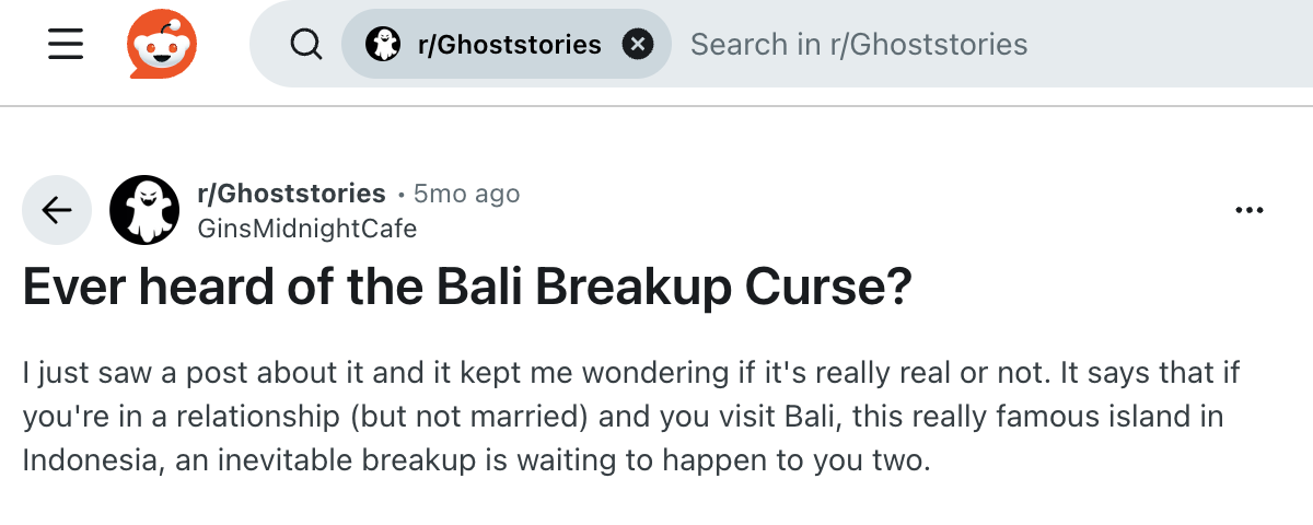 The "Bali breakup curse" is a topic that often comes up in online forums like Reddit and Quora. It’s also known as the “Tanah Lot Temple Curse.”