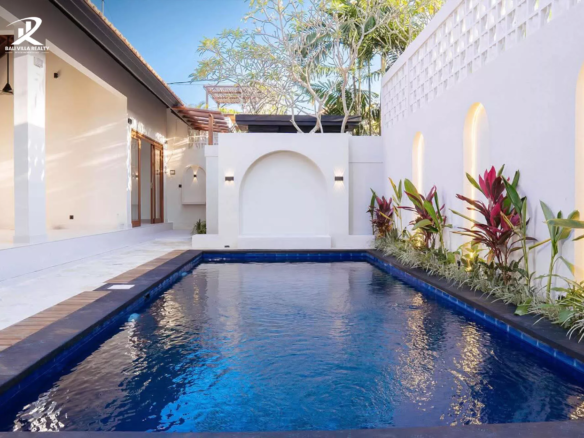 The villa features three luxurious bedrooms, each meticulously designed to provide the utmost comfort and privacy for guests. Outside, the villa features a sprawling garden oasis, complete with a sparkling infinity pool, sun loungers, and a shaded dining area perfect for alfresco meals with a view. A private pathway leads directly from the villa to the pristine sands of Keramas Beach, where you can enjoy leisurely walks along the shoreline or soak up the sun while listening to the soothing sounds of the ocean.