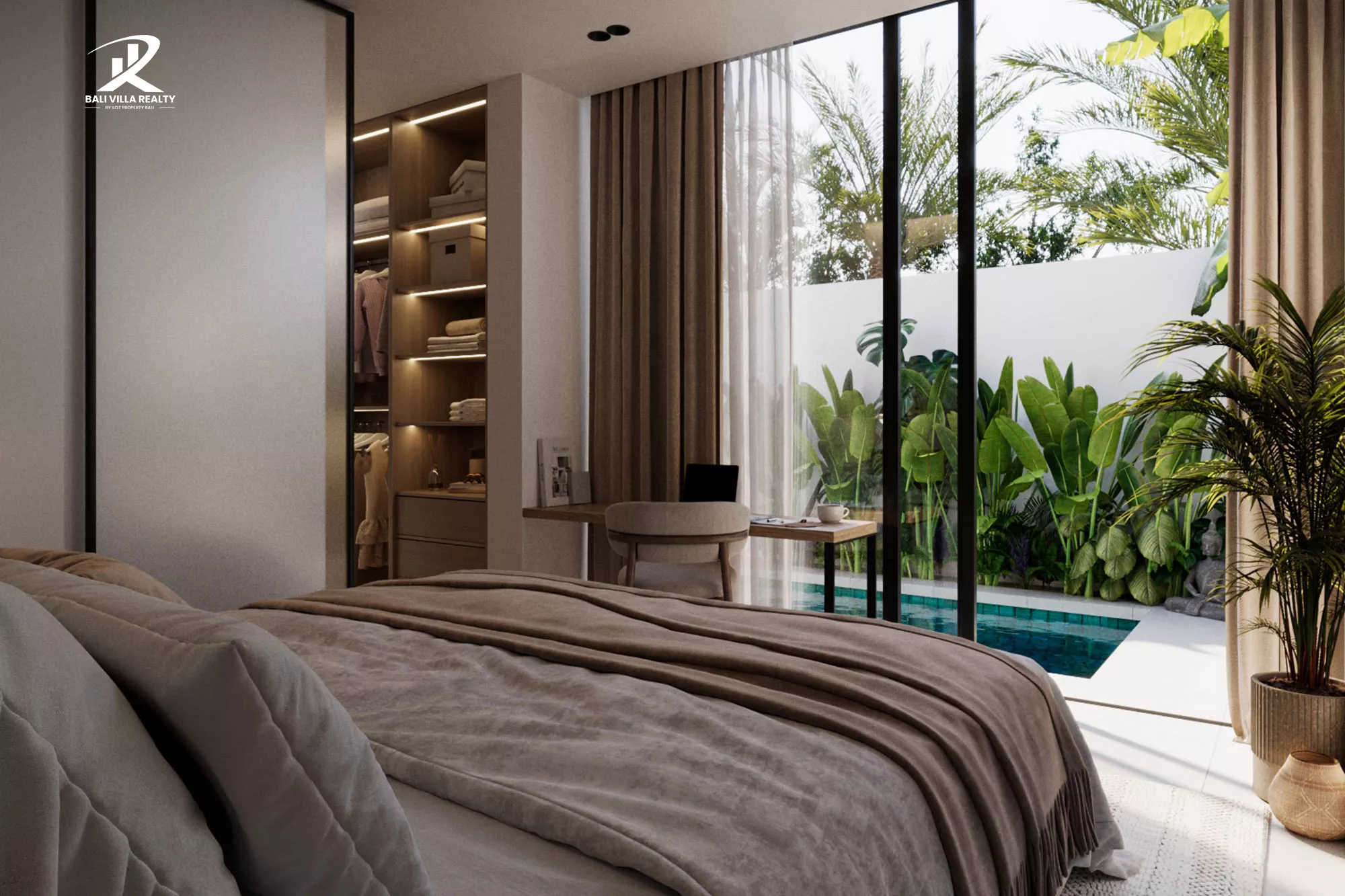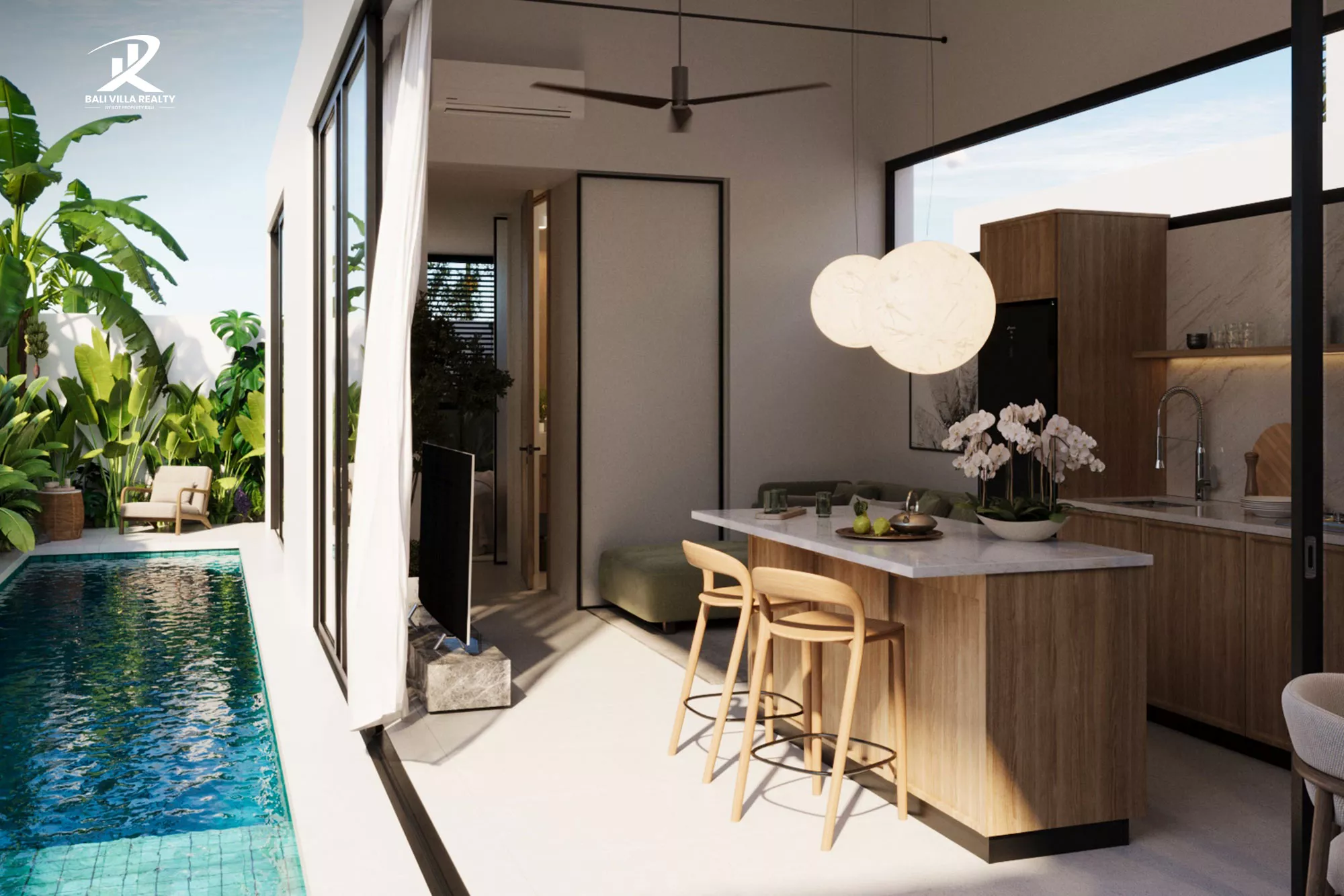 Step into this stunning modern minimalist villa, where clean architectural lines meet tropical tranquility. Featuring two elegant bedrooms, each with en-suite bathrooms and built-in wardrobes, the home offers a perfect balance of comfort and sophistication.
