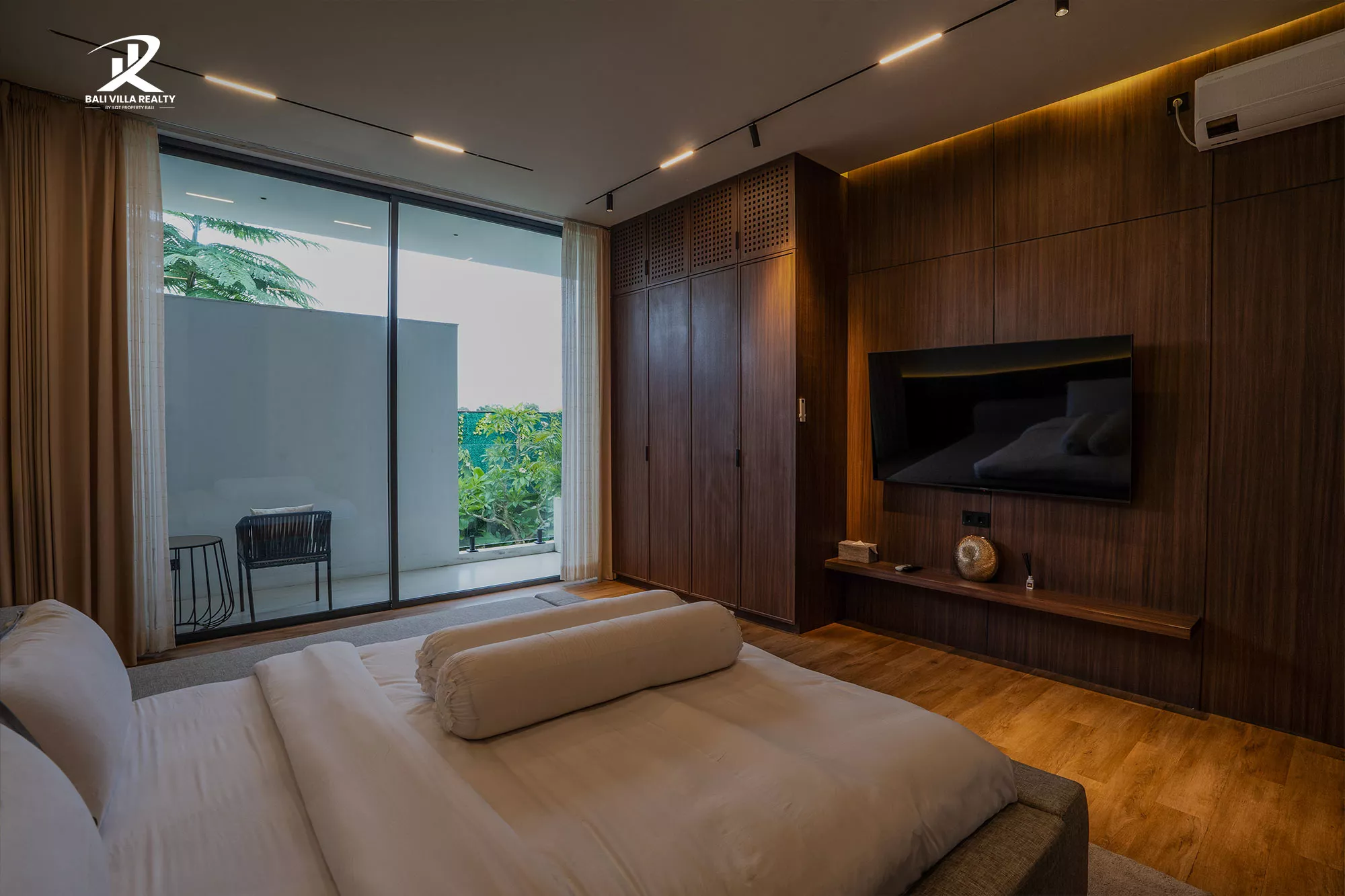 Indulge in the magnificent private pool and sunken fire pit lounge, perfect for sun-drenched days and star-lit evenings. Inside, the open-plan living and dining areas flow seamlessly, featuring a striking backlit floating staircase, a gourmet kitchen with a marble island, and plush, comfortable seating. Each of the three private suites is a retreat, offering dark wood paneling, premium bedding, and private balconies overlooking the pool. With state-of-the-art entertainment (including Disney+ ready TV and a massage chair!) and a peaceful, secure location, this villa is your ultimate luxury base for exploring Seminyak and Canggu.