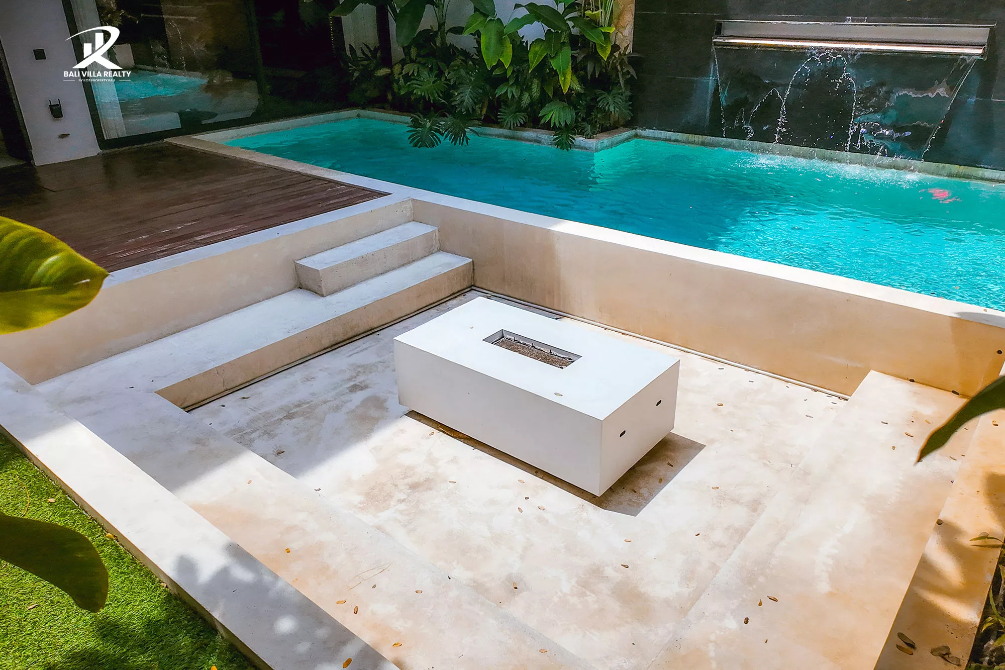 - Private Pool & Fire Pit: Sparkling pool and a modern sunken lounge area.
