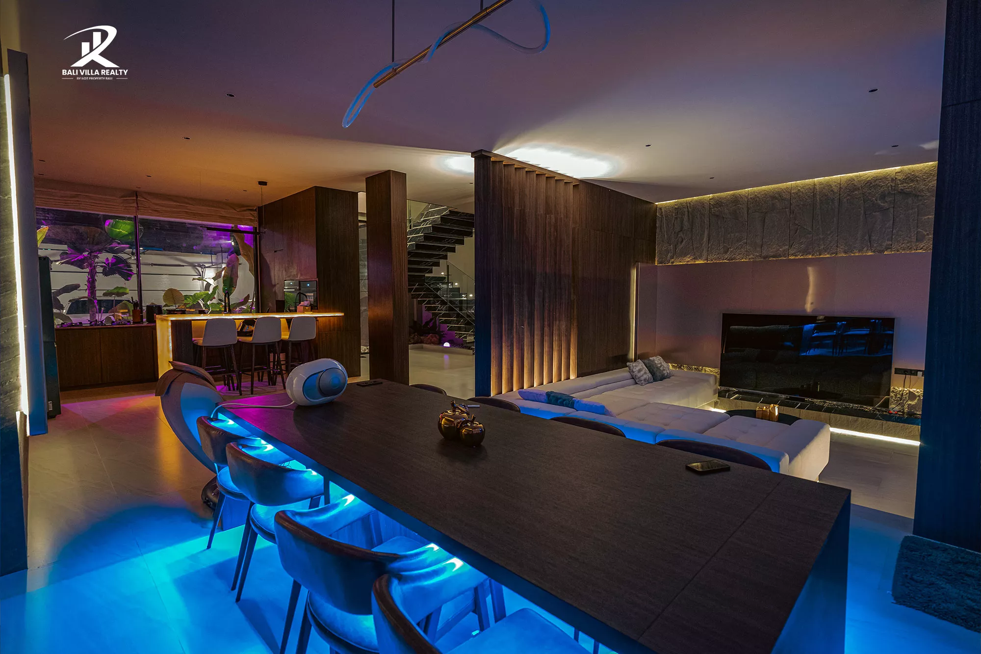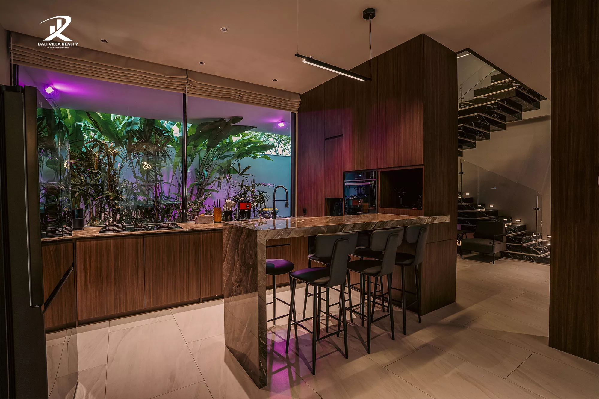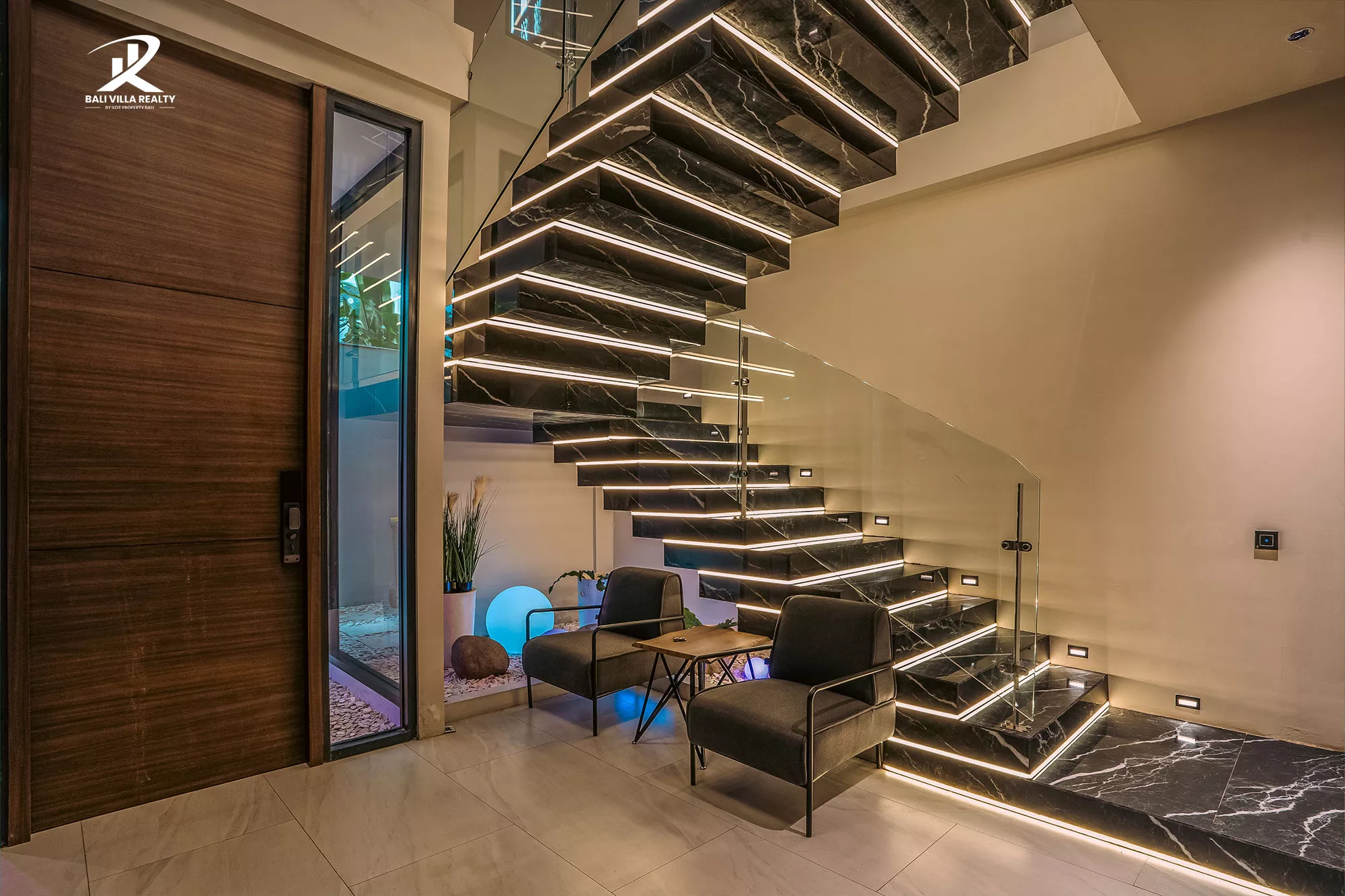 - Unique Design Features: Dramatic backlit marble staircase and feature walls.