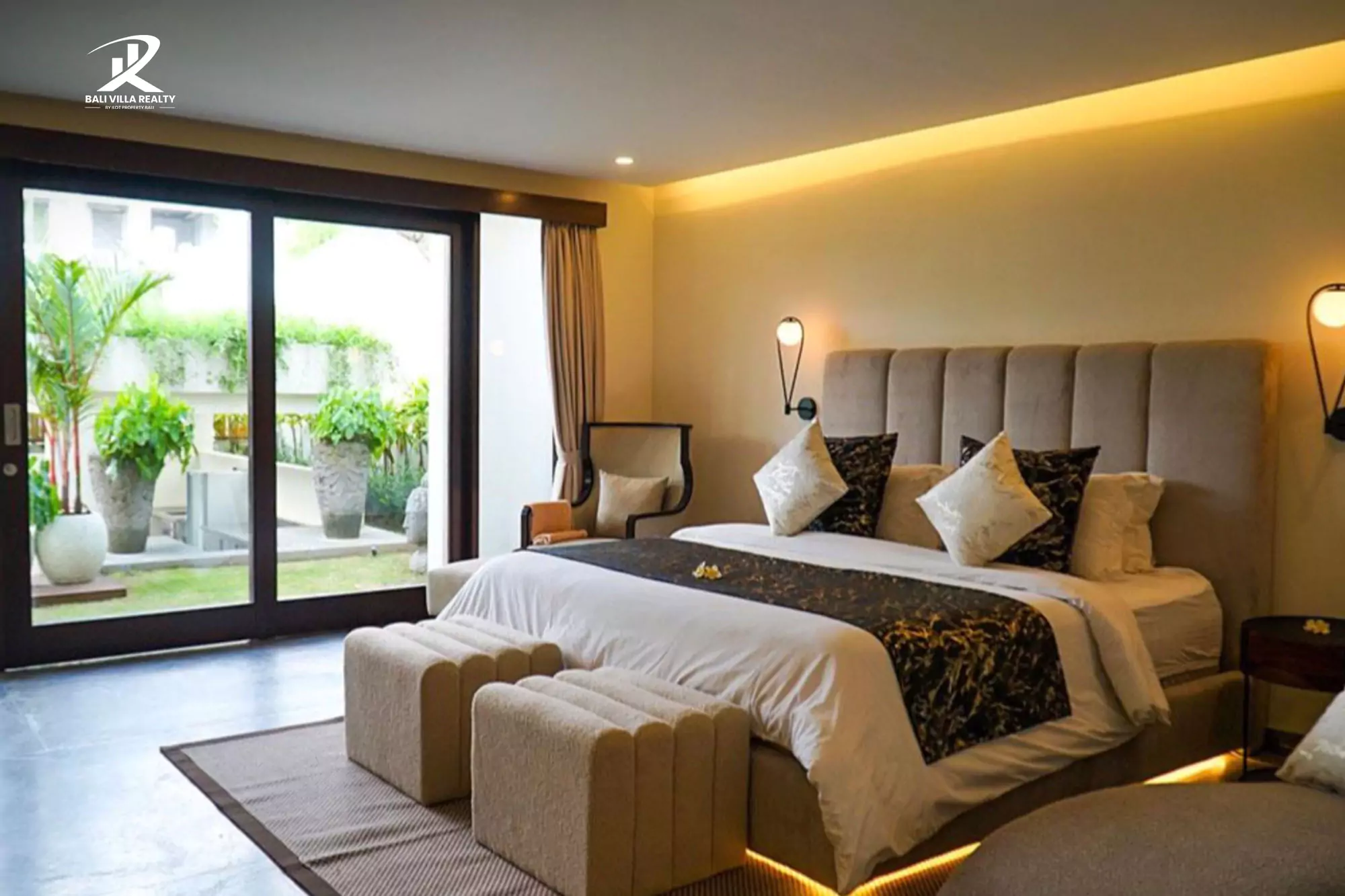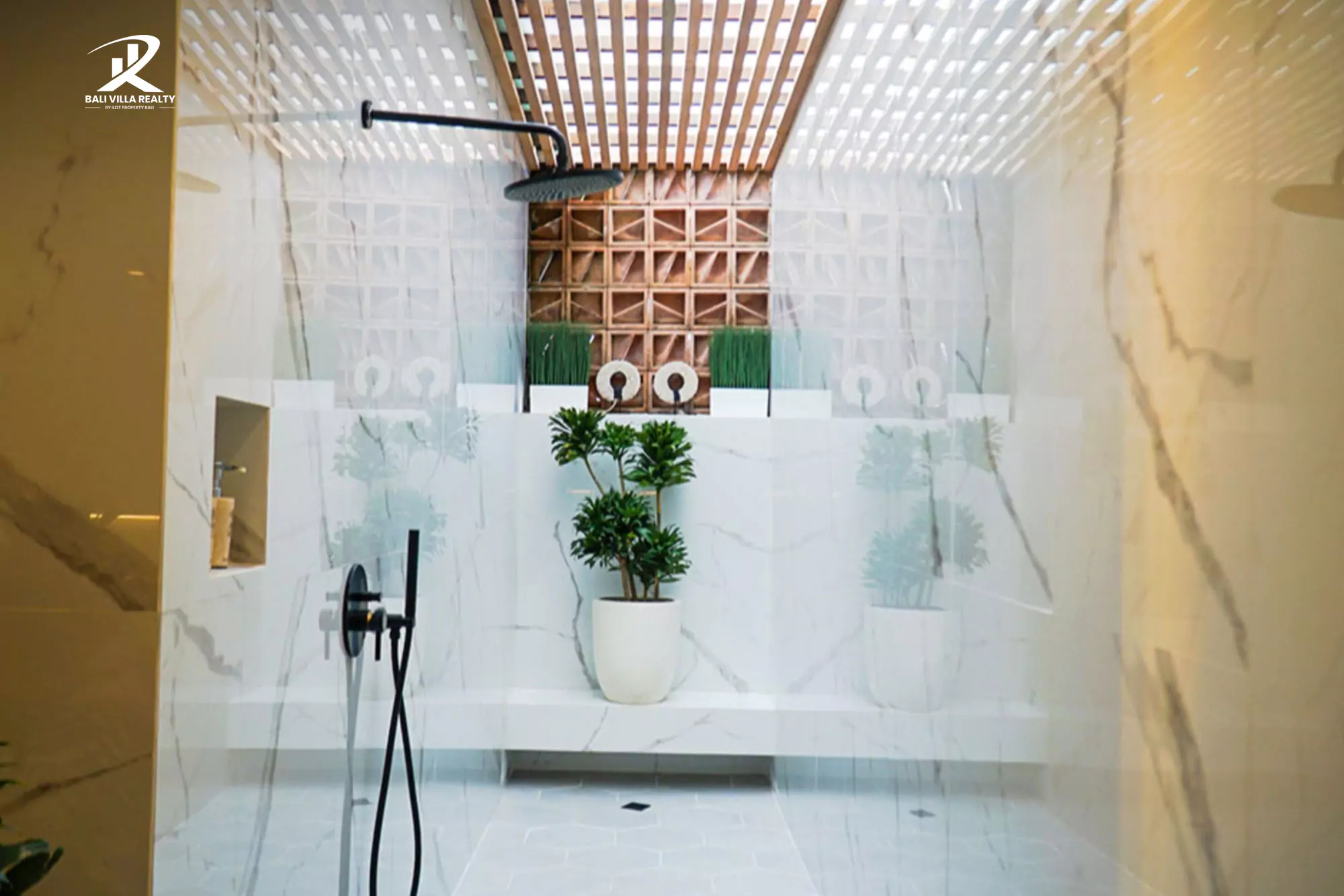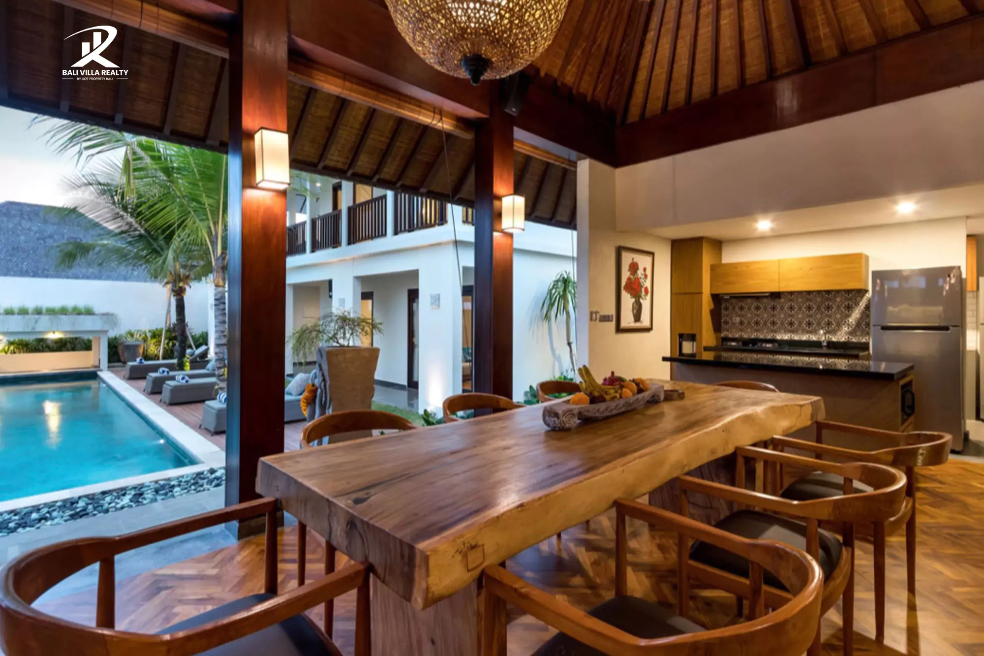 Surrounded by exotic plants and a bamboo privacy fence, the villa ensures peace and seclusion while still being close to nearby attractions. Relax under swaying palm trees by your sparkling private pool, surrounded by vibrant greenery and chic sun loungers. Whether you’re basking in the sun or enjoying a refreshing dip, the outdoor area is designed for pure indulgence.