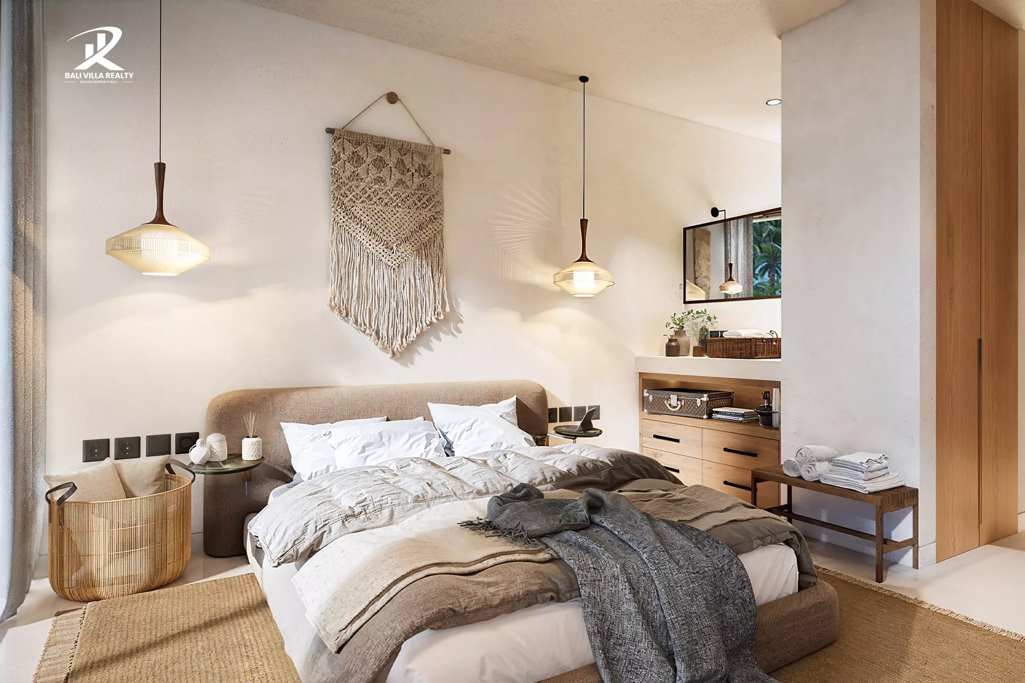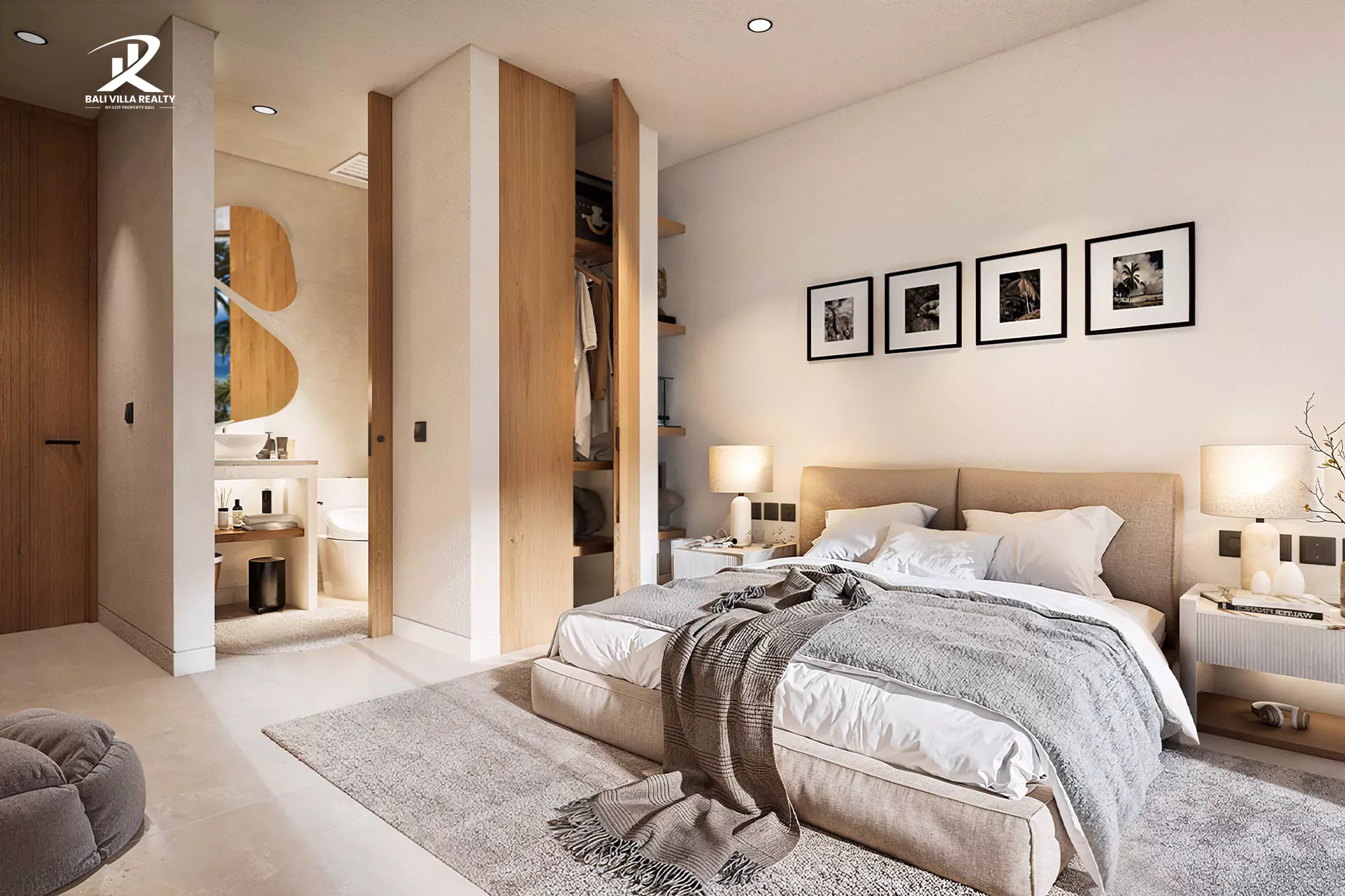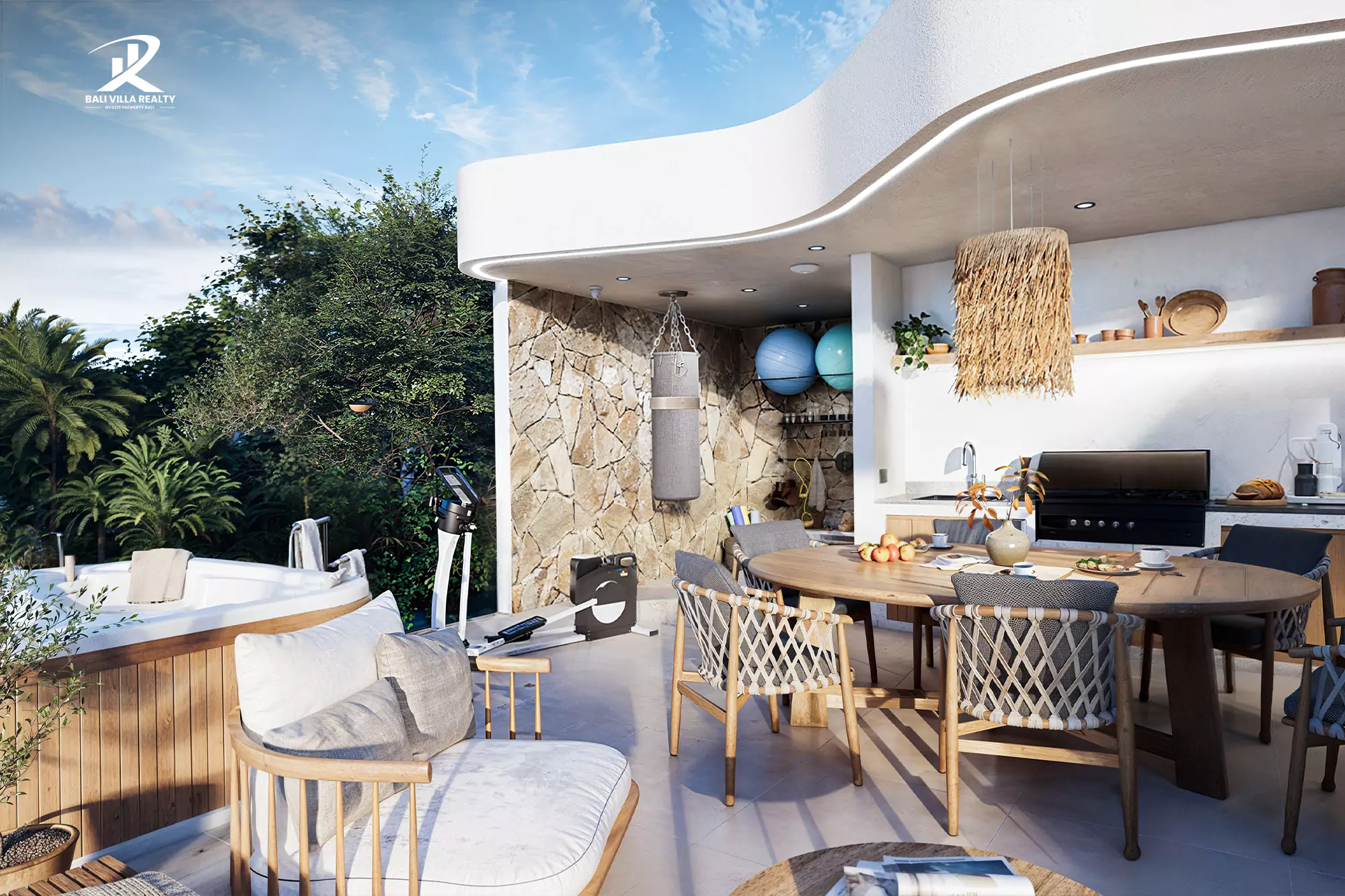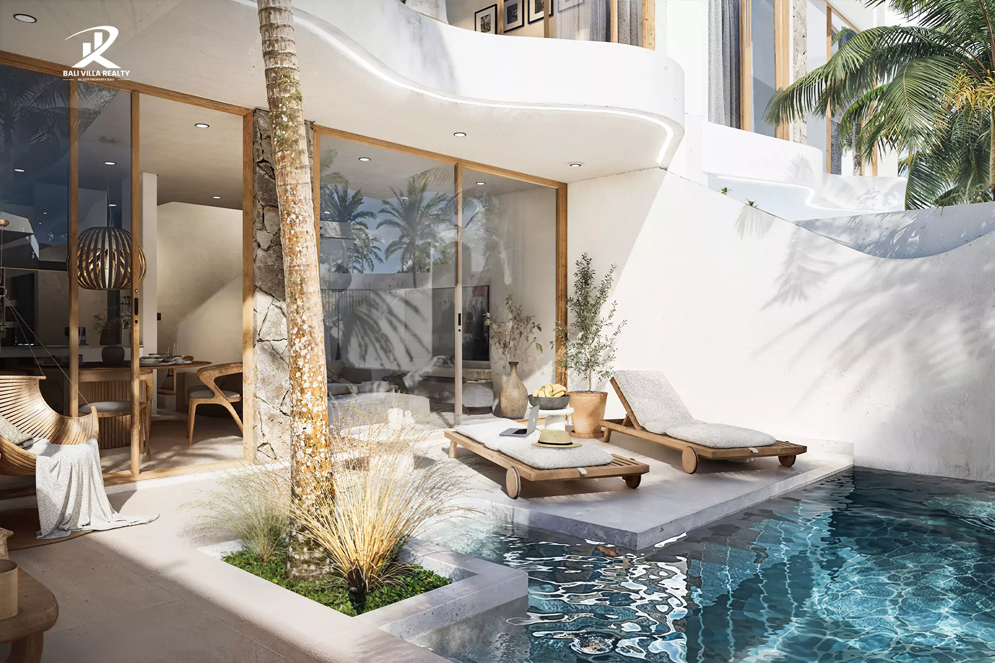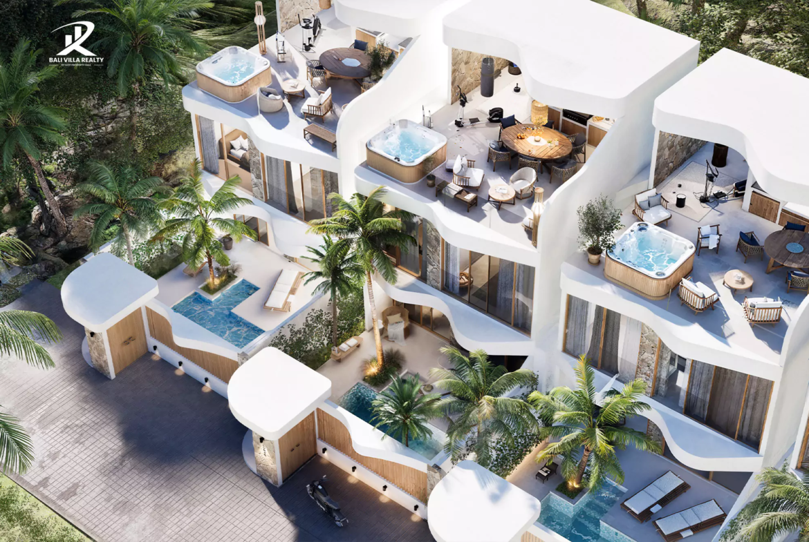 Spread across three floors, each villa is carefully designed to offer unmatched comfort and elegance. The ground floor features a stylish living room, a bright dining area, and a state-of-the-art kitchen that opens onto a spacious terrace. This outdoor space includes a private pool with an integrated sunbathing area, perfect for enjoying Bali’s tropical lifestyle near Nyang-Nyang Beach.