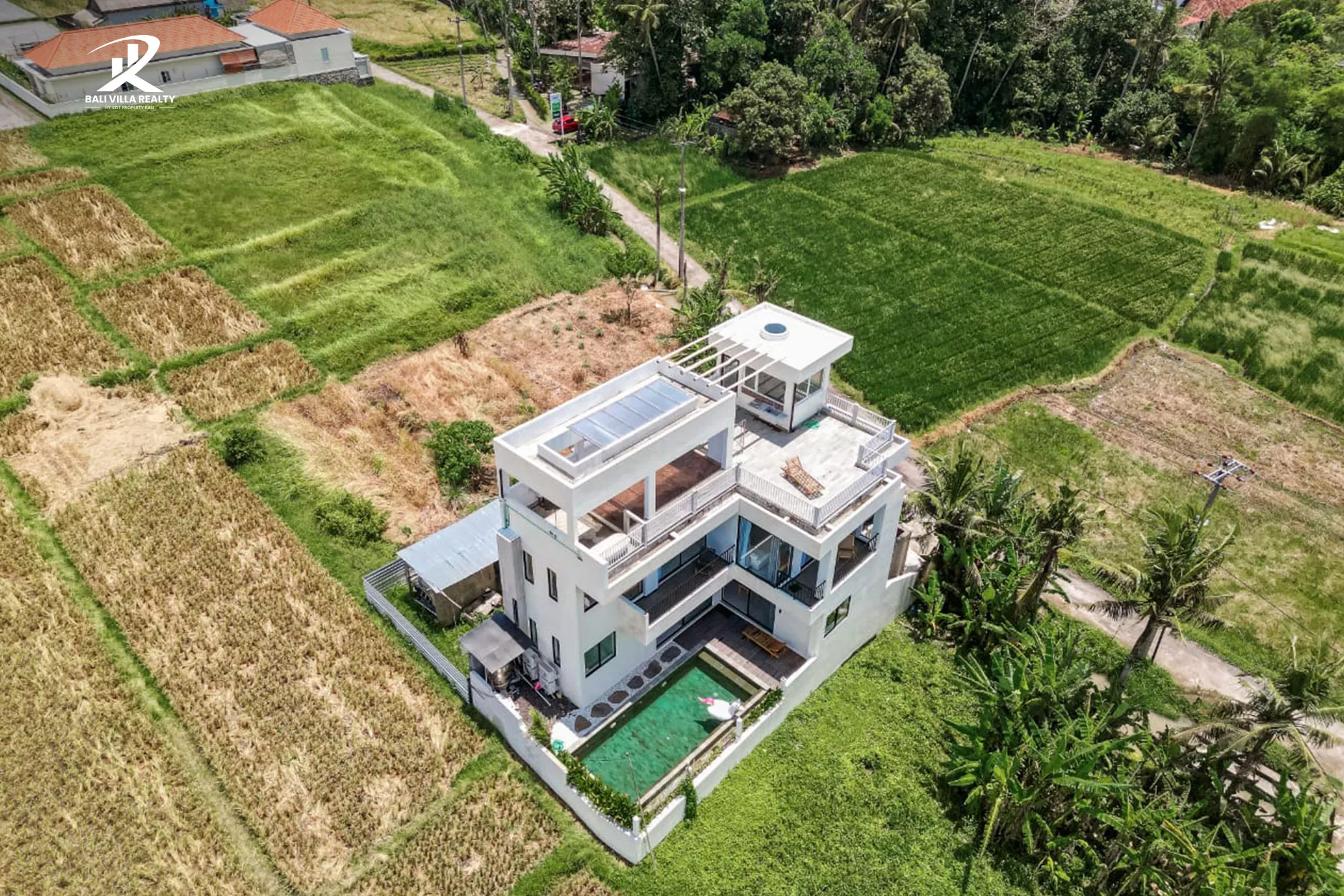 • 3 Bedrooms with Unobstructed Views: Each level and bedroom is designed with expansive glass to maximize the endless rice field vistas.
