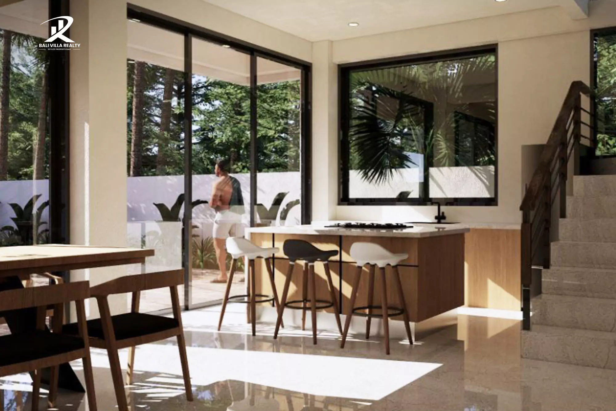 Each three-story residence showcases an open layout where natural light floods every room. Floor-to-ceiling windows frame lush greenery, while the top-floor rooftop lounge provides a stunning vantage point for sunsets and starlit evenings.