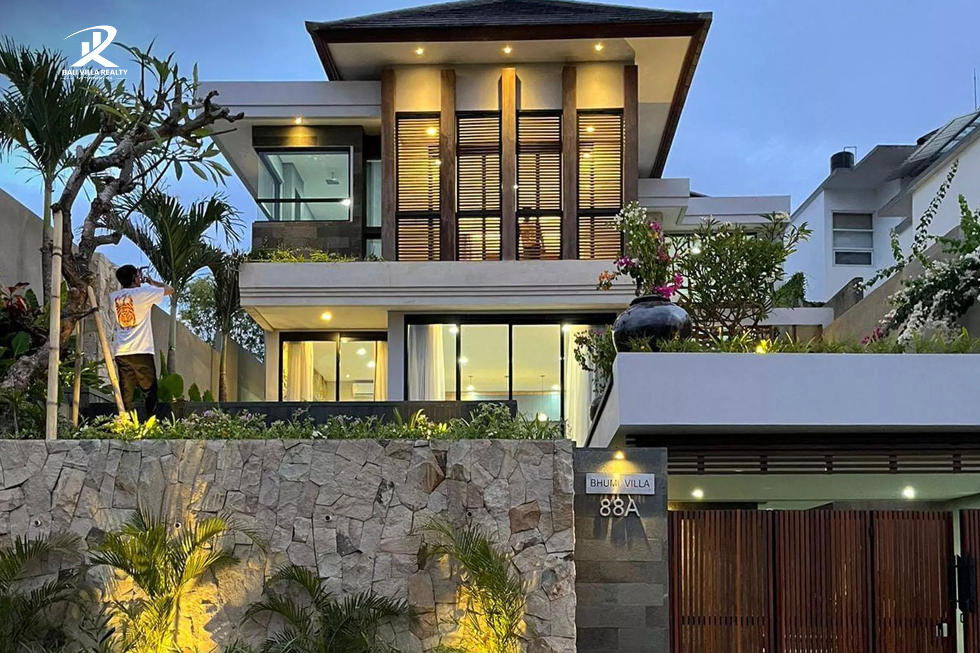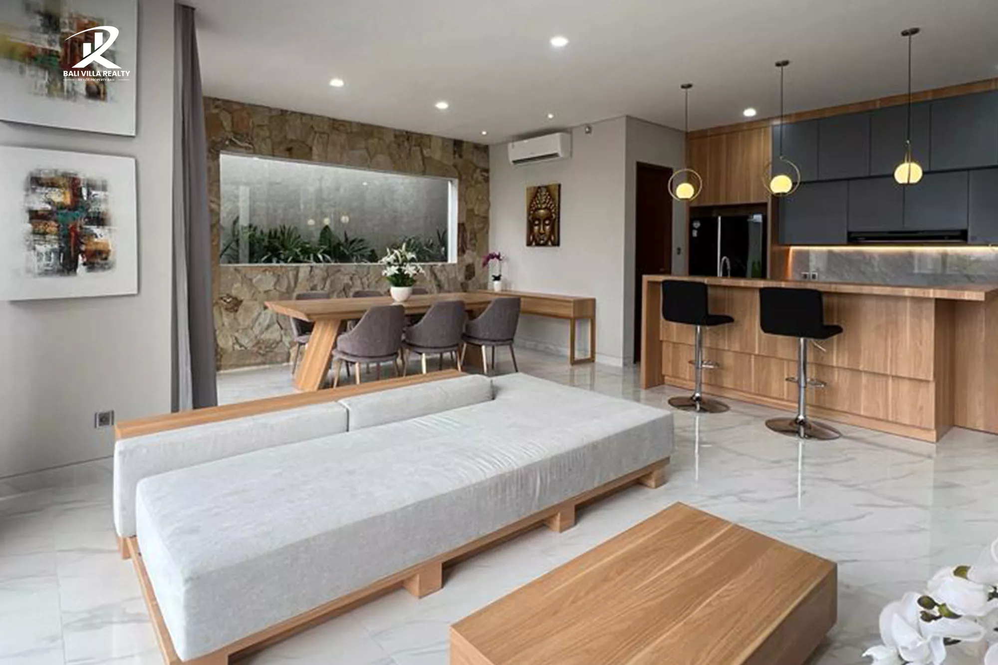 Jimbaran Gem: 3BR Villa Blending Indoor-Outdoor Living & Stone Textures For Sale Leasehold