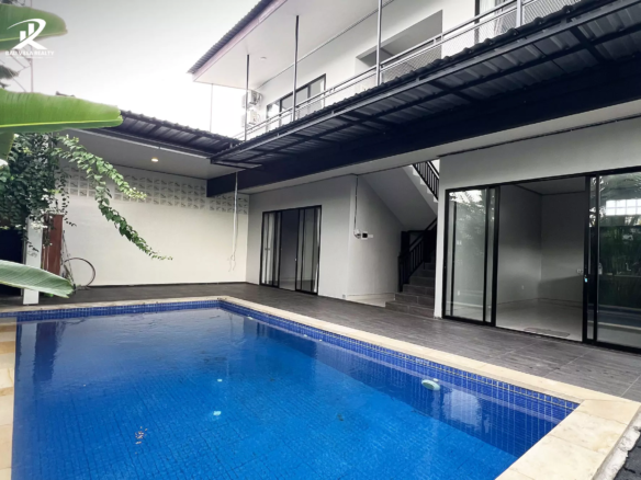 A two-bedroom residence with a private swimming pool, fruit trees, and vegetable gardens. This uniquely designed villa is a work of art, filled with contemporary pieces and curious antique décor. The 80 m2 pool pavilion is perfect for sunset cocktails or family dinners, and the 12 by 5 meters pool is deep enough for diving lessons. The spacious bedrooms, open-plan living room, and kitchen blend modern and Indonesian aesthetics, creating a harmonious atmosphere. Beautifully designed gardens with two banyan trees provide various spots for relaxation, accompanied by the melodious birdsong.