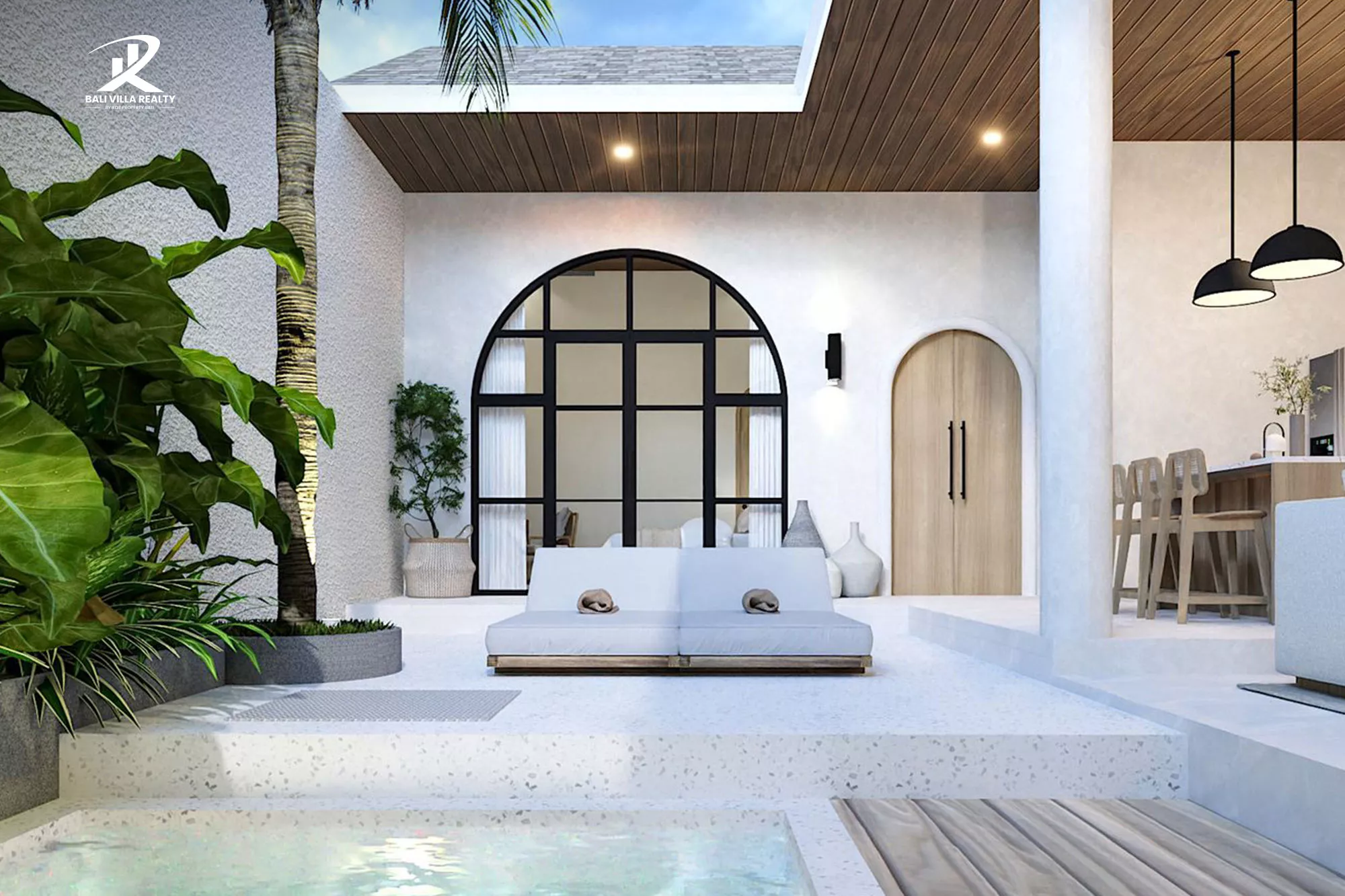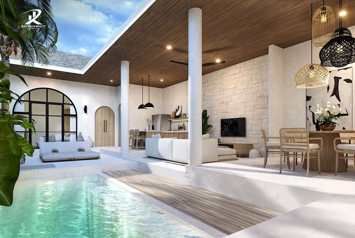 Mediterranean-Bali Fusion: Stunning 3BR Arched Villa with Central Courtyard Pool in Jimbaran For Sale Leasehold