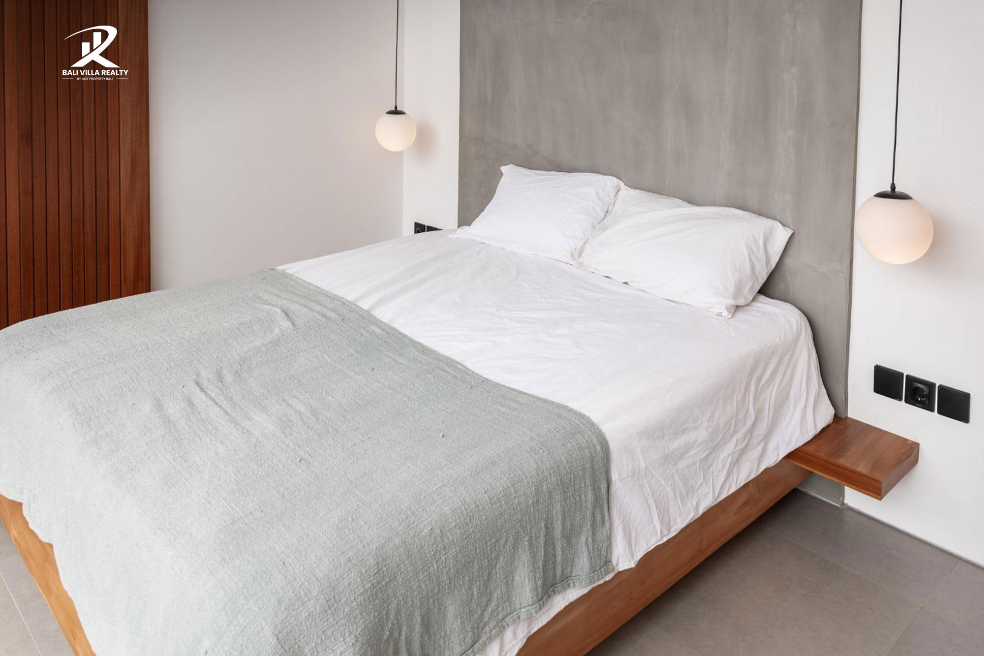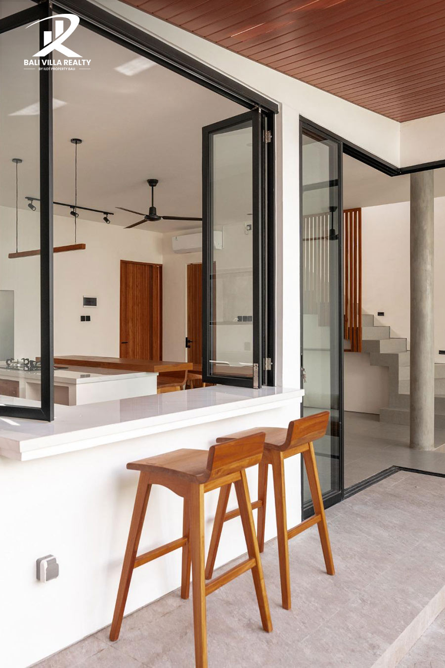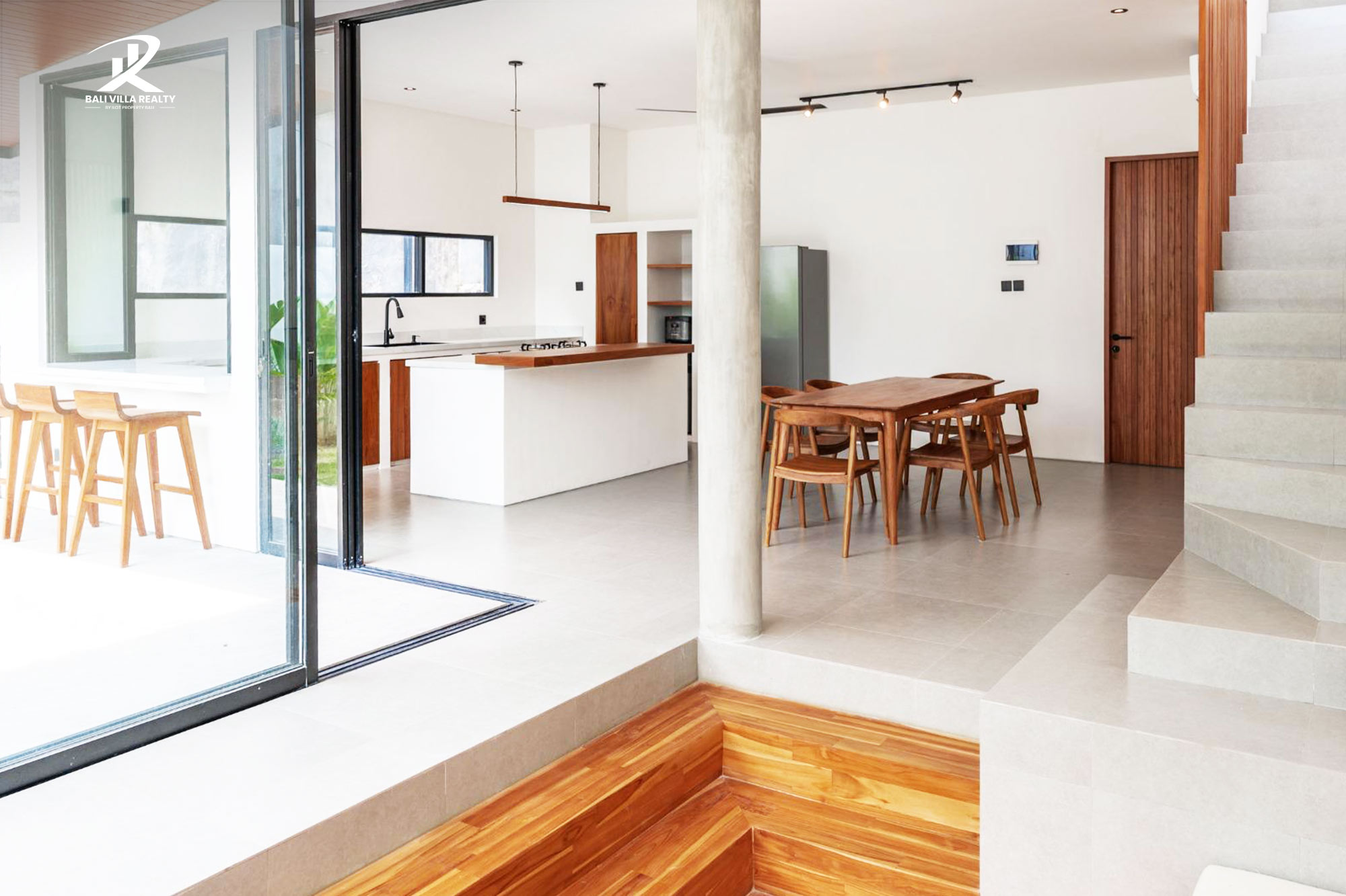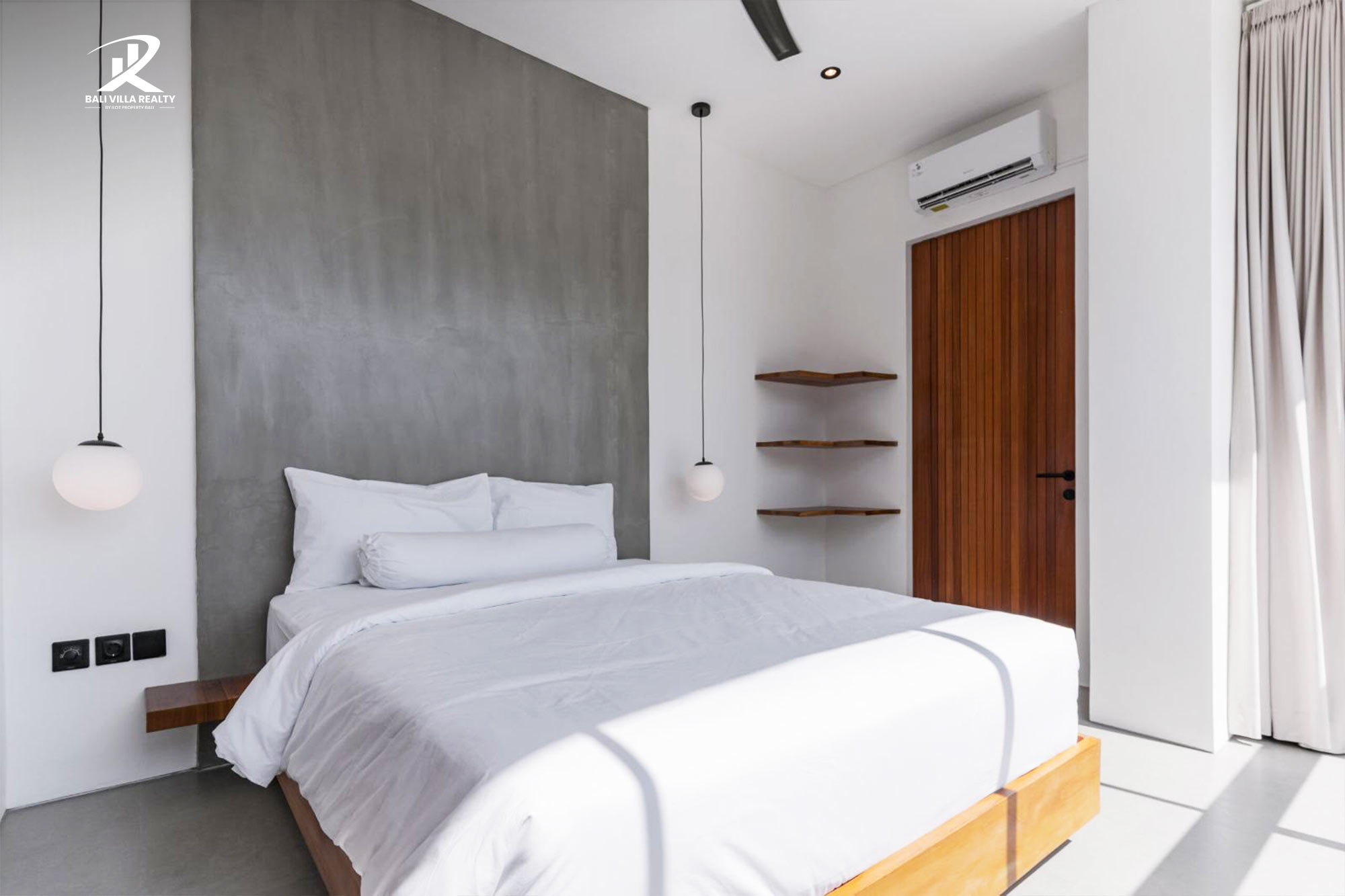 The interiors are designed with a minimalist aesthetic, featuring a neutral color palette and high-quality materials that enhance the sense of space and light. The modern kitchen is fully equipped with high-end appliances and boasts sleek cabinetry and a stylish island, ideal for both casual meals and entertaining. The villa’s location is highly desirable, being just an 11-minute drive to Pererenan Beach, known for its laid-back vibe and surf spots, and a 15-minute drive to Batu Bolong Beach, which is a hub of activity with its popular beach clubs, restaurants, and shops.