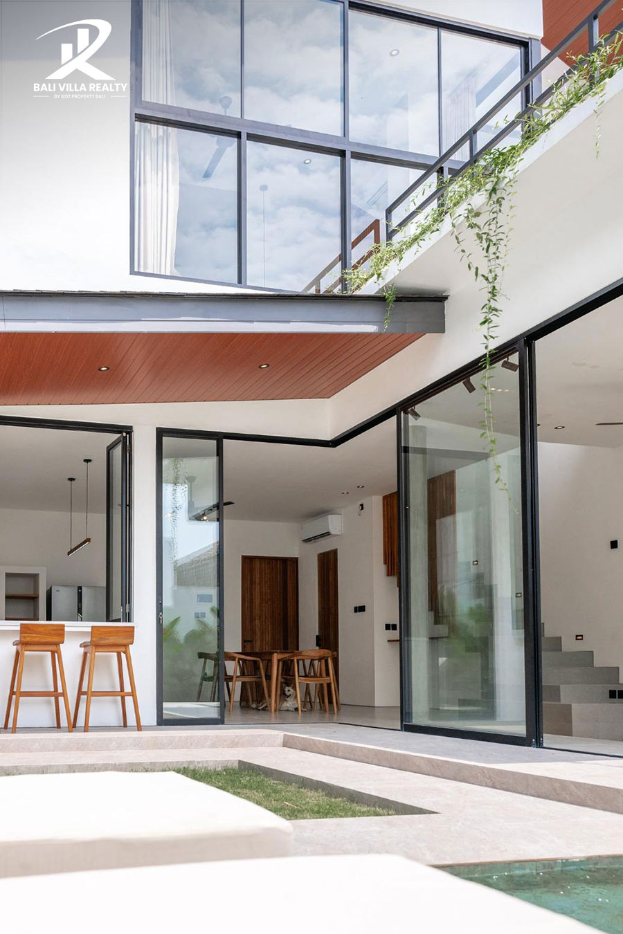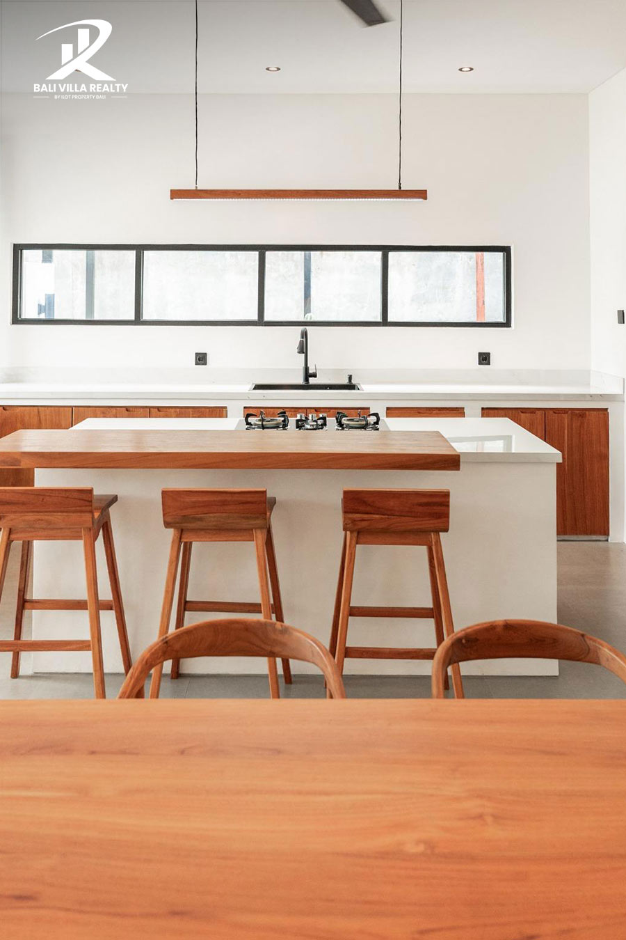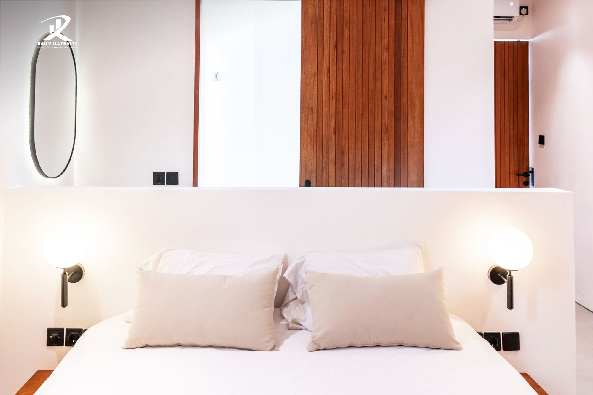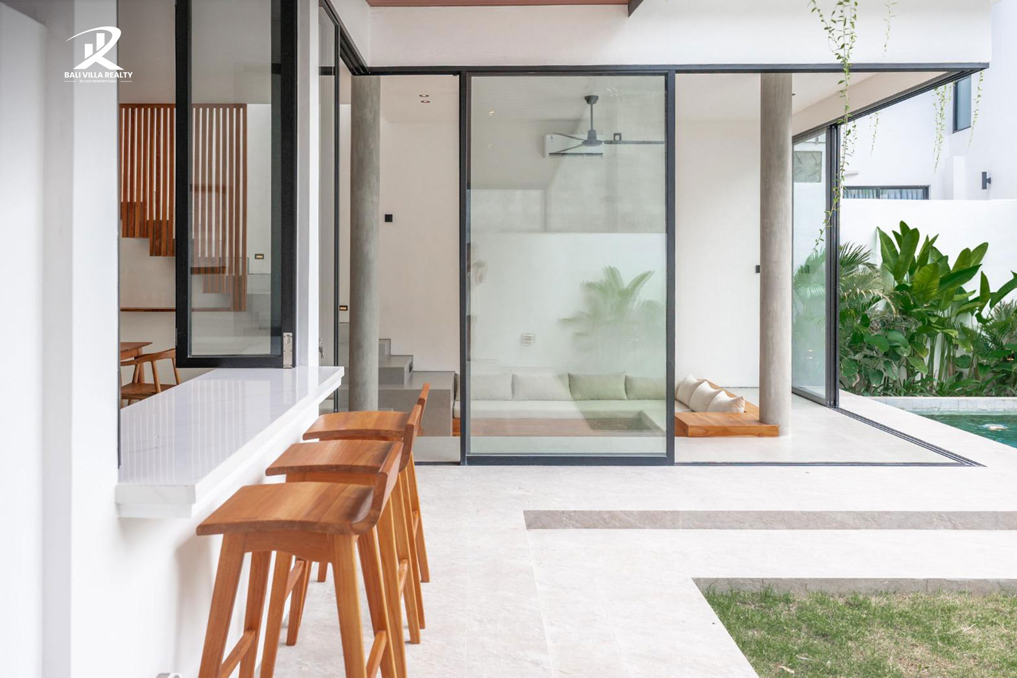The interiors are designed with a minimalist aesthetic, featuring a neutral color palette and high-quality materials that enhance the sense of space and light. The modern kitchen is fully equipped with high-end appliances and boasts sleek cabinetry and a stylish island, ideal for both casual meals and entertaining. The villa’s location is highly desirable, being just an 11-minute drive to Pererenan Beach, known for its laid-back vibe and surf spots, and a 15-minute drive to Batu Bolong Beach, which is a hub of activity with its popular beach clubs, restaurants, and shops.