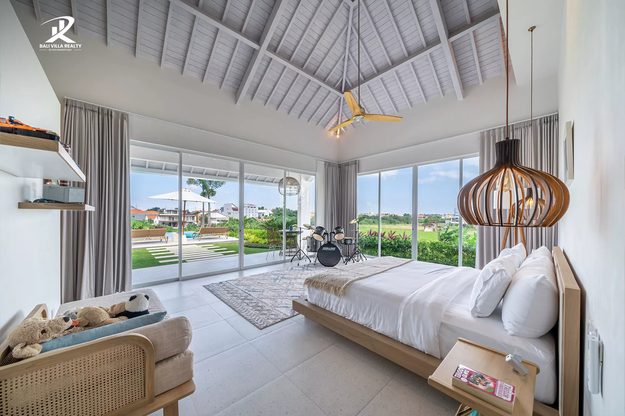 Each of the four spacious bedrooms serves as a private retreat, finished with high-end natural materials and large windows that frame the surrounding greenery. Outside, the geometric infinity pool serves as the focal point, surrounded by manicured lawns and sun-drenched terraces.