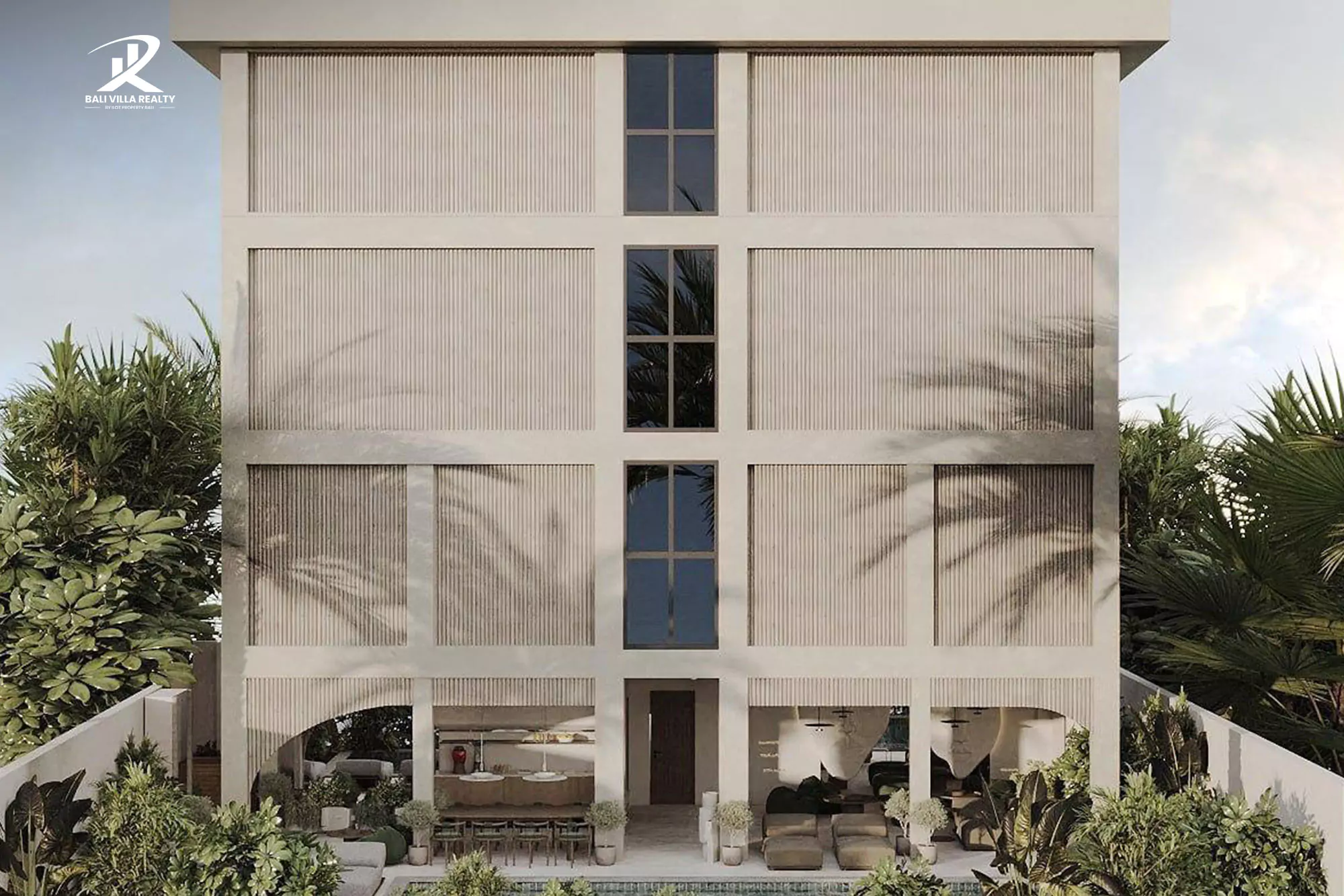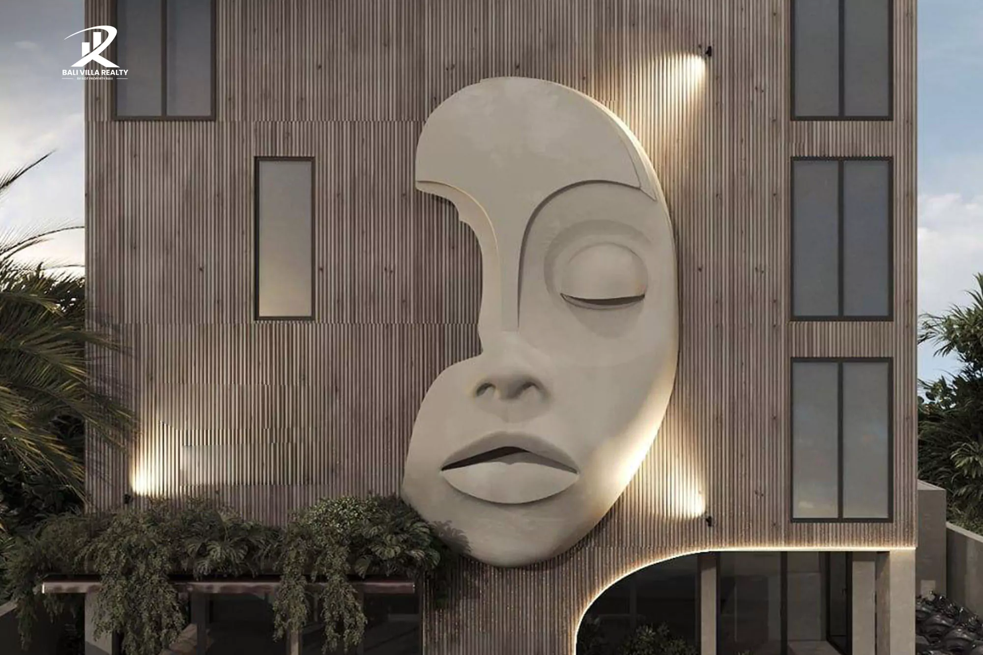 Discover this stunning apartment, a one-of-a-kind boutique apartment that blends modern design with Balinese tropical charm. Its striking facade, featuring an artistic sculptural face, makes it an iconic landmark and a statement of style.