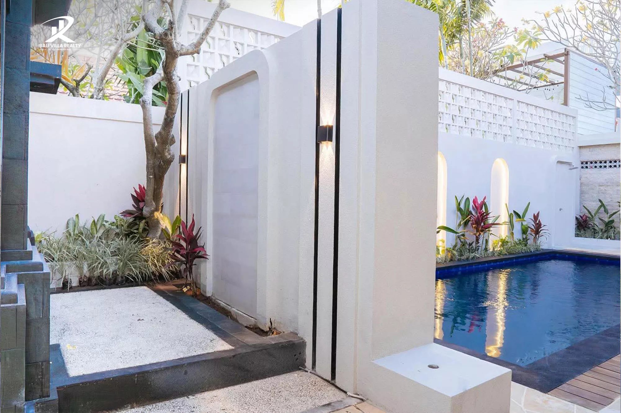 - Private Swimming Pool – surrounded by lush tropical greenery and ambient lighting for a peaceful retreat.