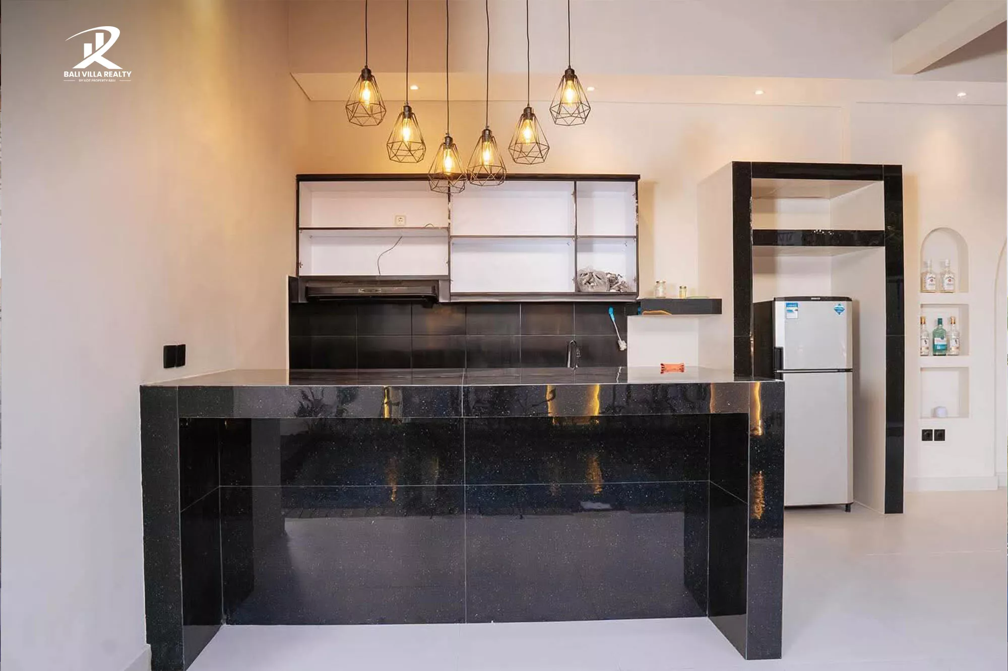- Open-Plan Kitchen & Dining Area – sleek black stone countertops, modern appliances, and pendant lighting create a luxurious atmosphere.