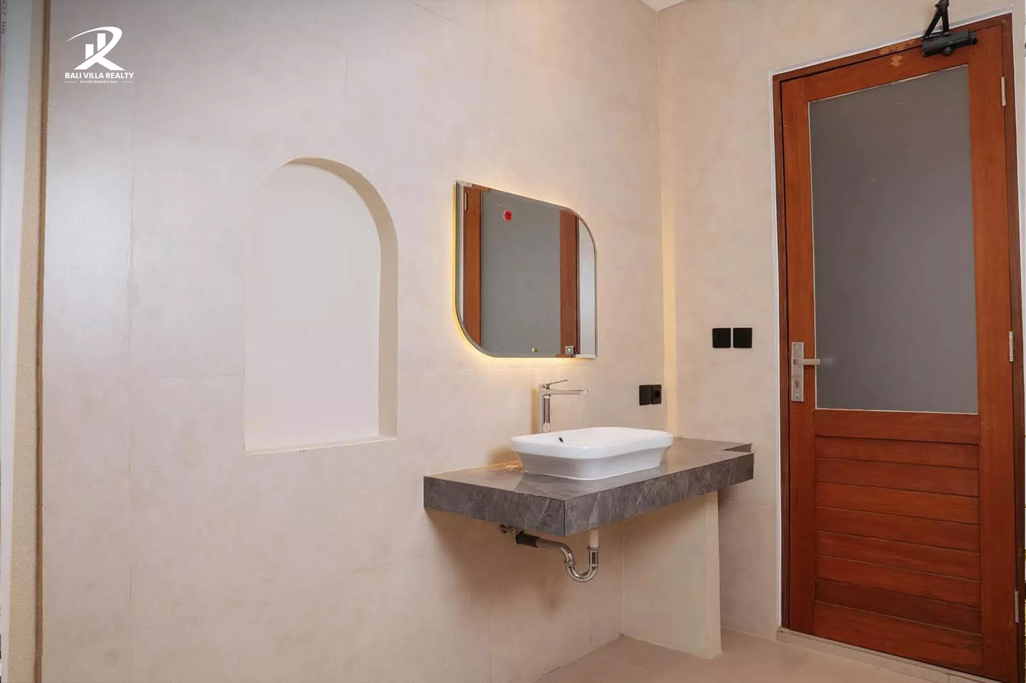 - 2 Elegant Bedrooms with En-Suite Bathrooms – featuring natural tones, arched walls, and warm lighting.