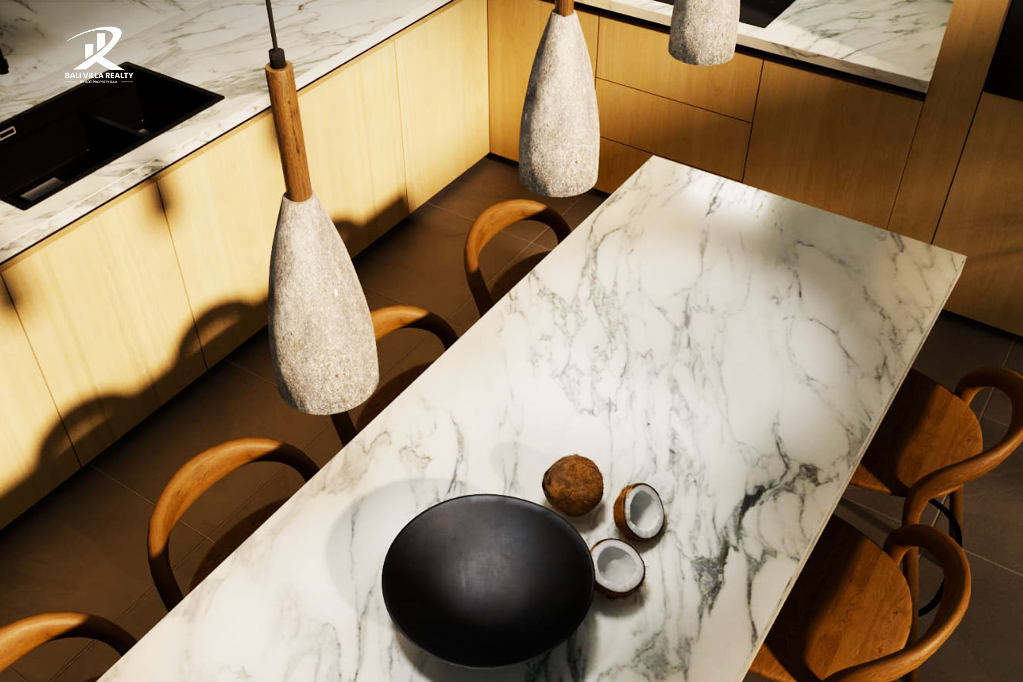 The villa boasts five spacious bedrooms, each designed as a personal sanctuary with en-suite bathrooms and modern amenities. Each room is a blend of comfort and style, ensuring that every guest enjoys their own private retreat within the villa.