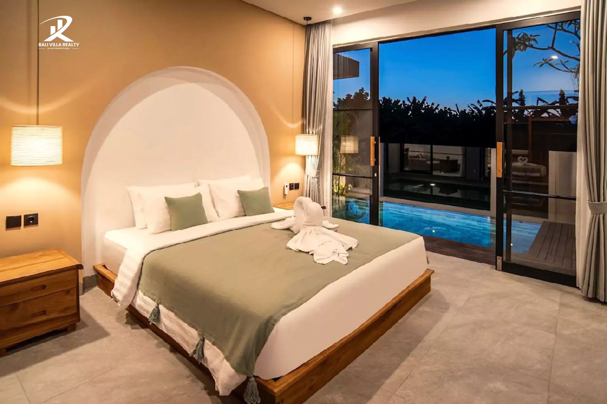 • Tranquil Bedroom Suite: King bed, soft lighting, and direct pool access for a resort-style experience.
