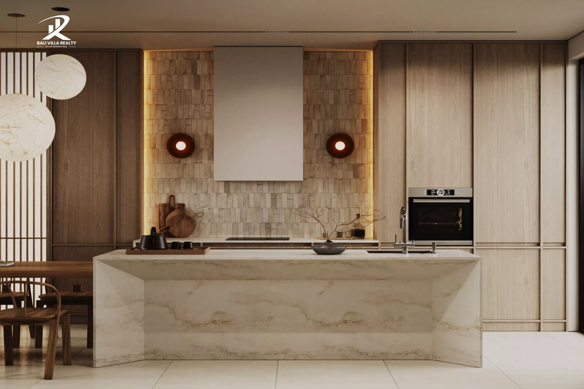 • State-of-the-art kitchen with a sleek marble island and premium finishes.