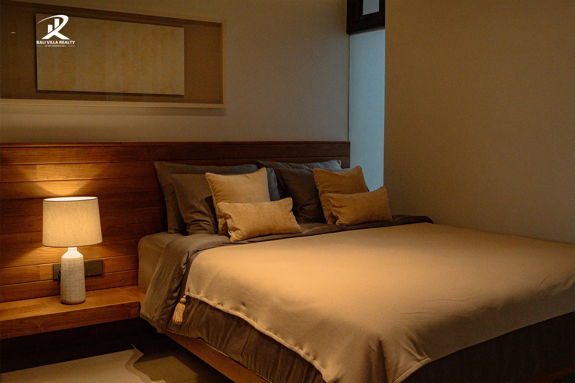 - Luxury Master Suites: Two beautifully appointed bedrooms feature plush bedding, wooden headboards with integrated lighting, and direct access to outdoor spaces.