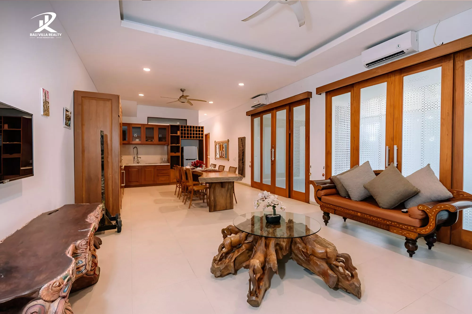 - Elegant Living Area – high ceilings, natural light, and traditional Balinese artistry.