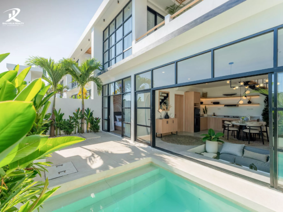 The residence offers a lifestyle of unparalleled sophistication, centered around a soaring double-height living pavilion and a rooftop jacuzzi that serves as the ultimate sunset vantage point. With a high-spec interior featuring a private cinemaand gourmet kitchen, this property is optimized for the elite short-term rental market. This leasehold opportunity offers an accessible entry point into high-end coastal living, placing you in a quiet, prestigious enclave just minutes from Canggu’s world-class surf and social scene.