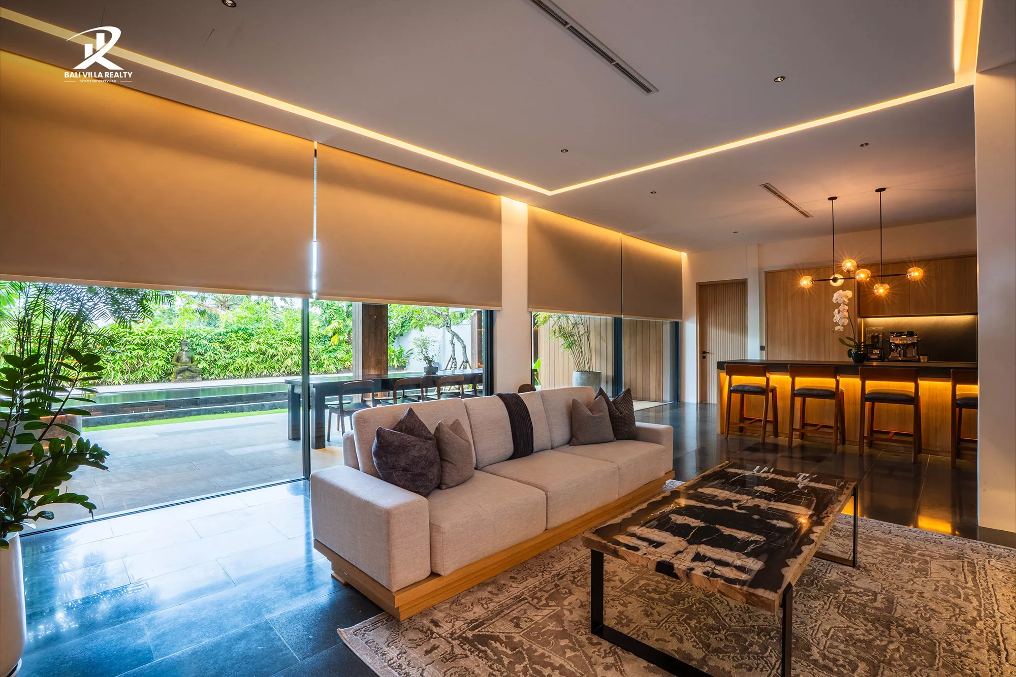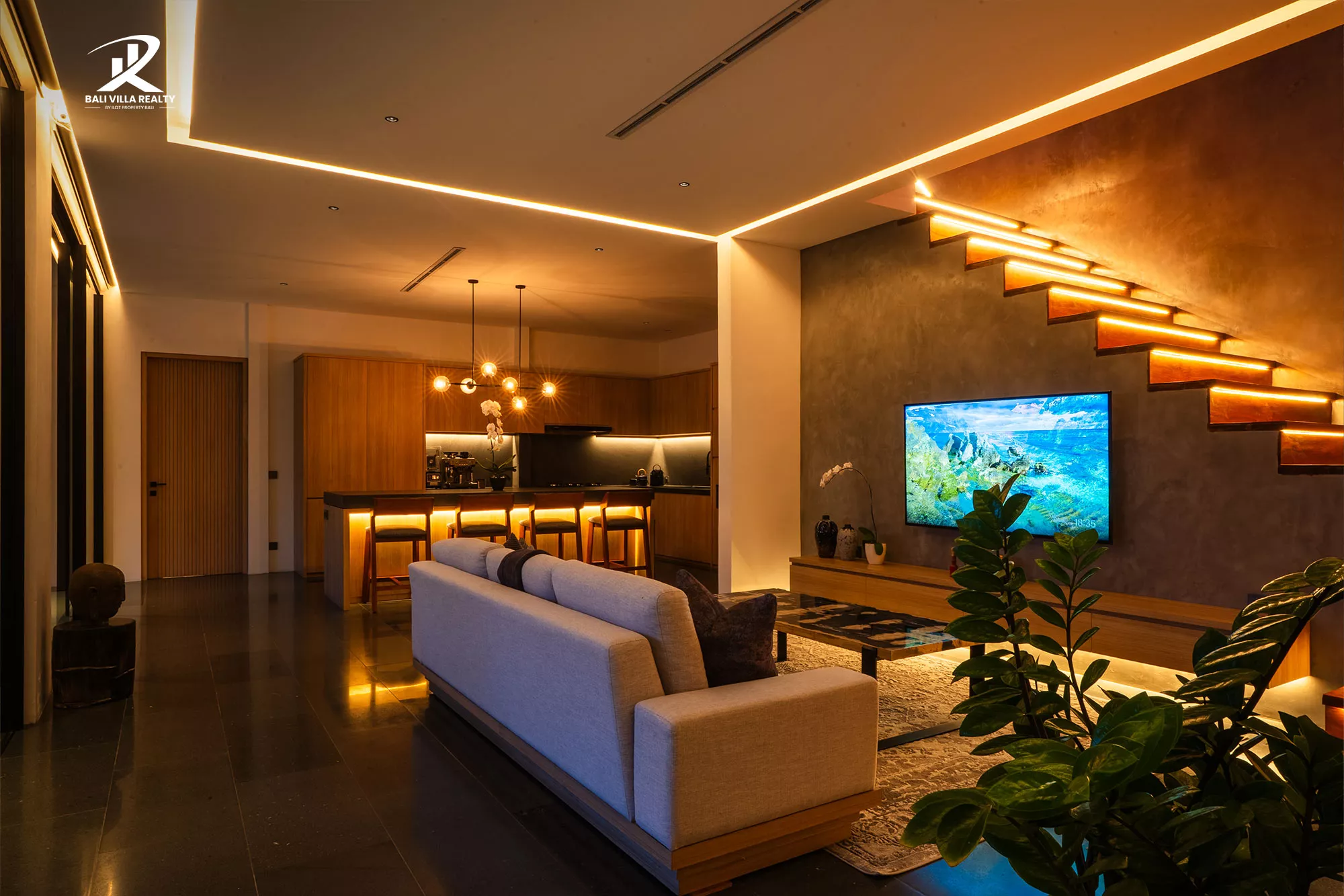 • Smart Lighting Design: Carefully curated mood lighting throughout the villa, highlighting the rich textures and natural materials.