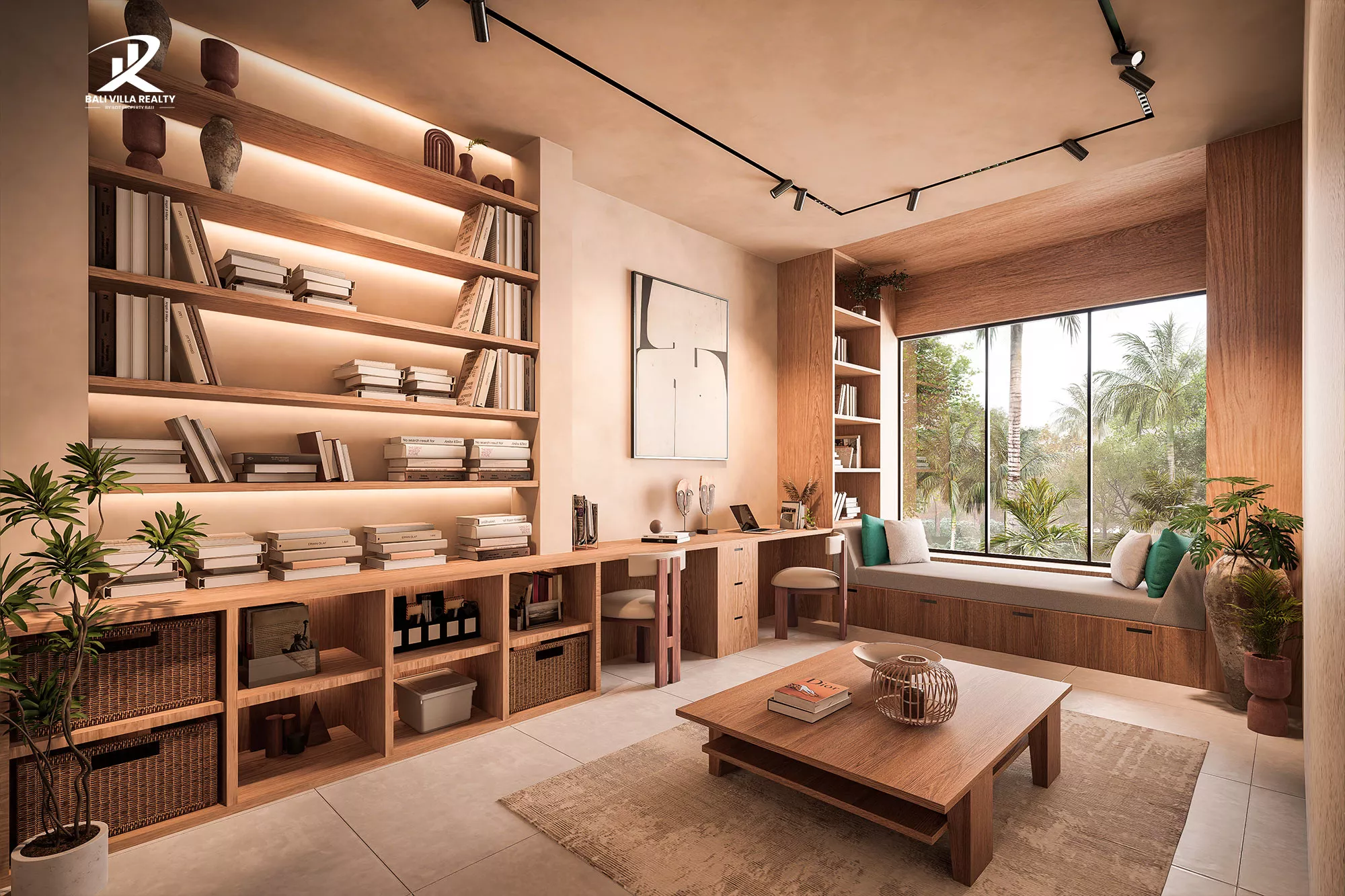 - Dedicated Workspace: Includes a beautifully designed home office or library area with bespoke floor-to-ceiling shelving and natural light.