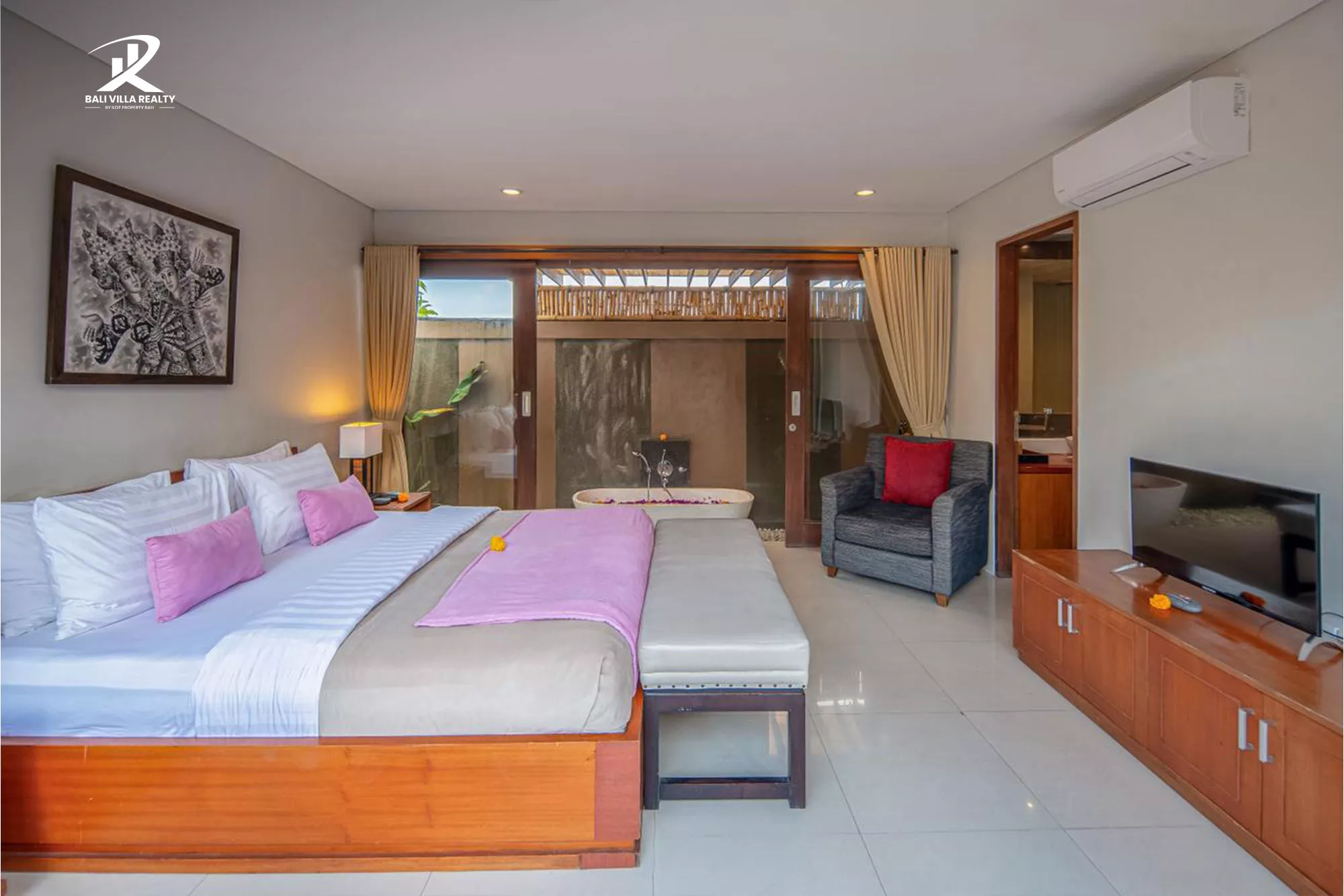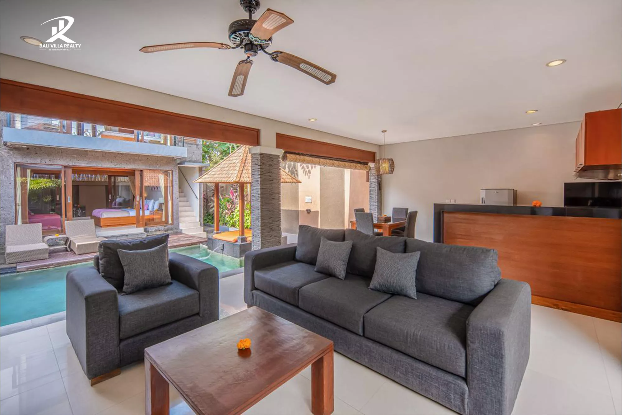 This elegant 3-bedrooms villa perfectly blends modern comfort with tropical serenity. Step into a bright open-plan living space overlooking the pool, where natural materials and Balinese artistry create an atmosphere of calm sophistication.