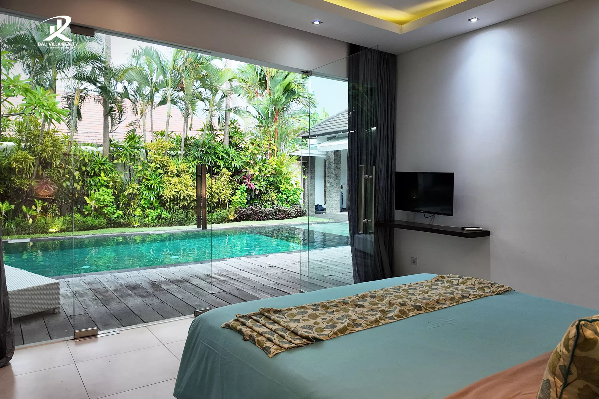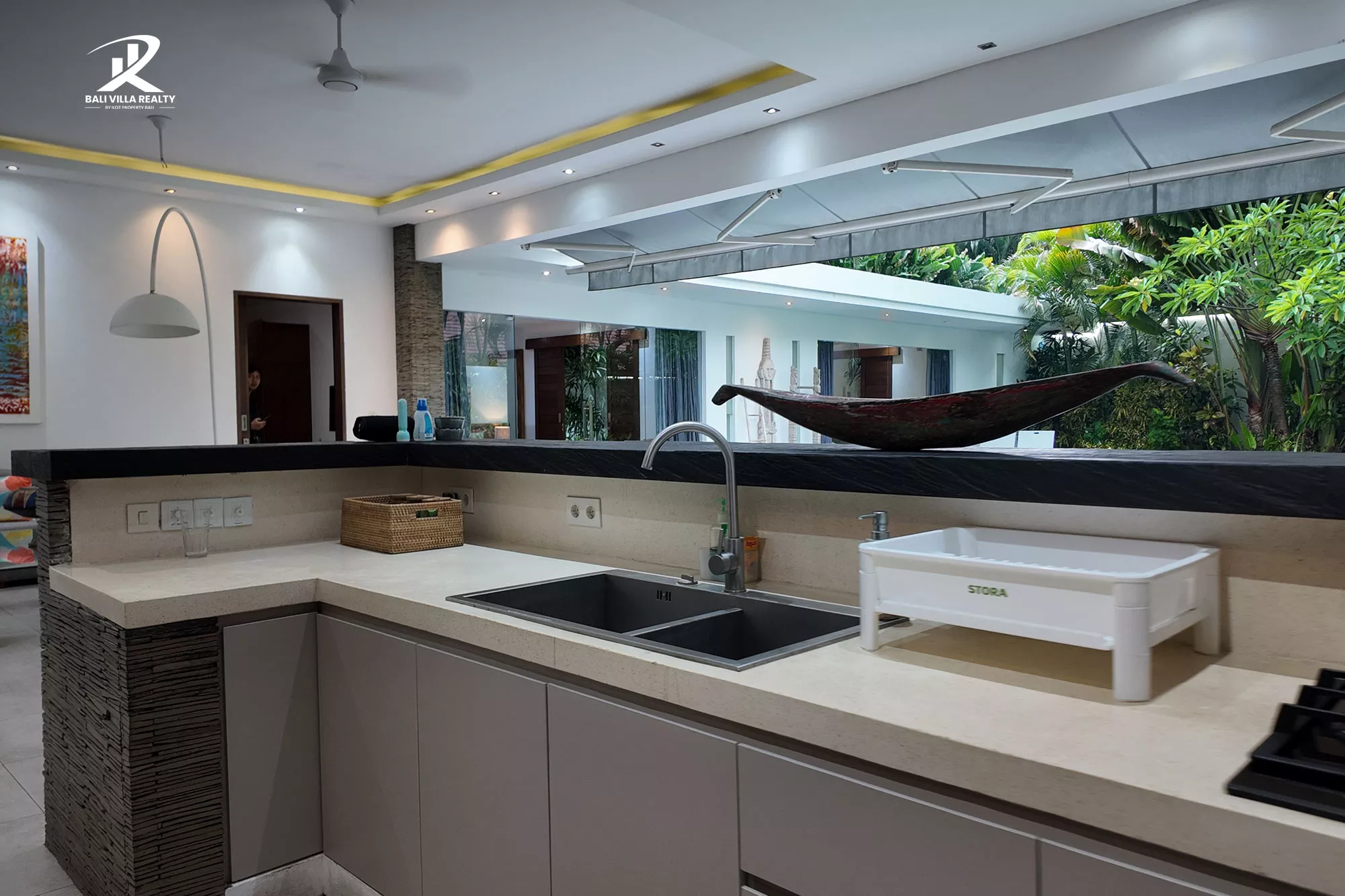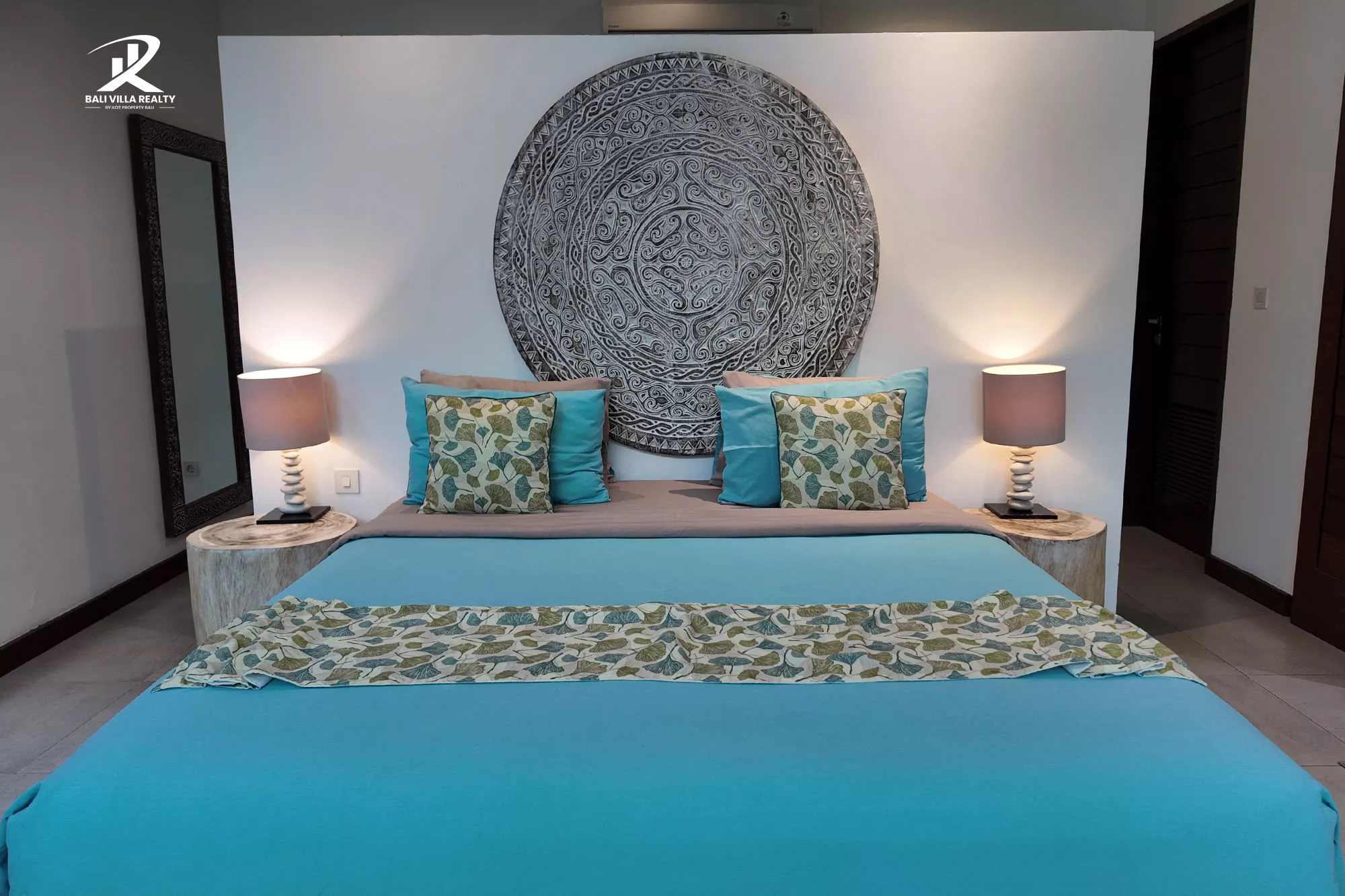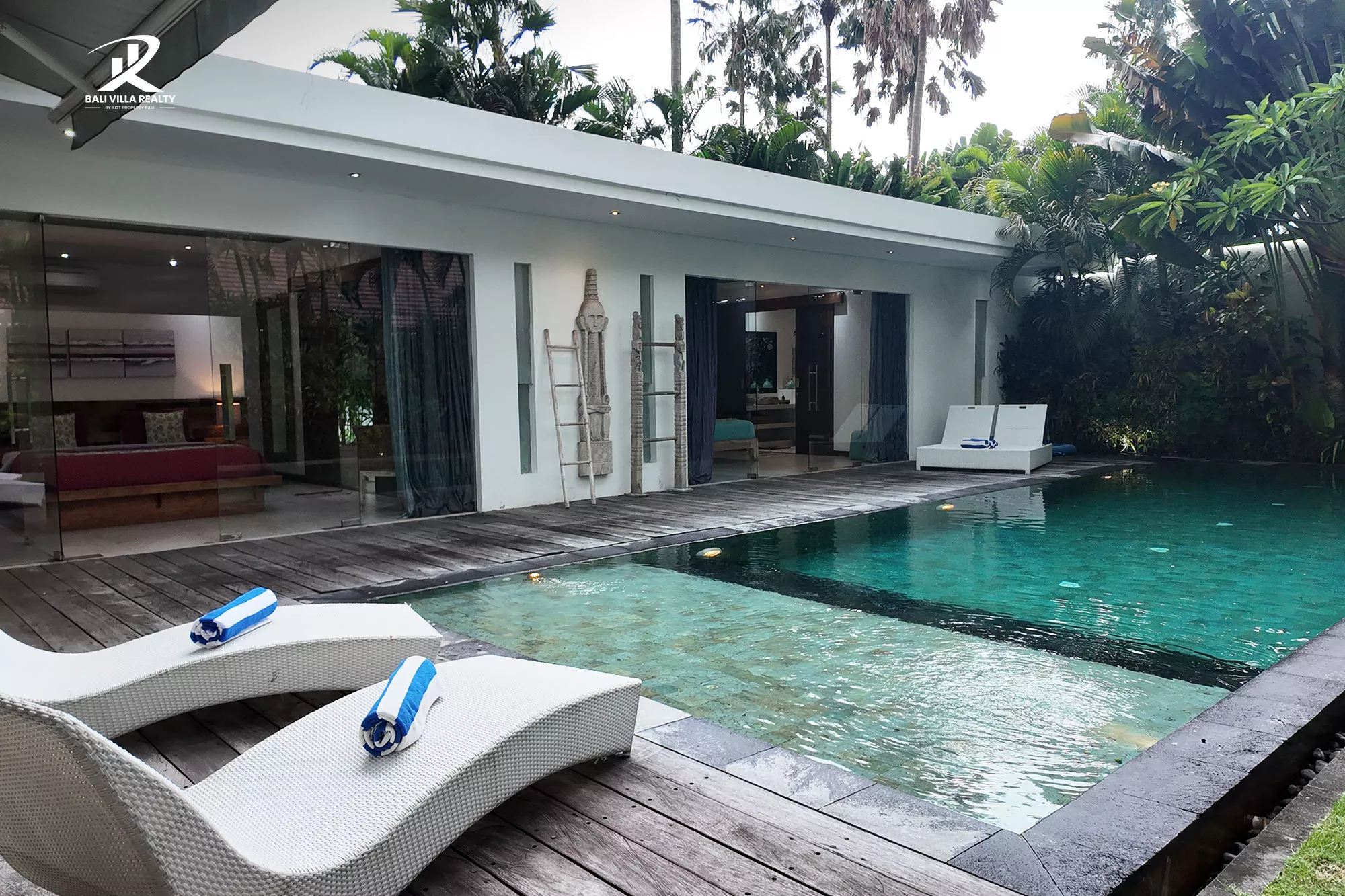 Each bedroom is generously sized and ensuite, opening to lush greenery or the pool area, offering privacy and tranquility. The open-plan living, dining, and kitchen areas flow seamlessly to the outdoor space, where a private swimming pool, sun loungers, and landscaped garden invite you to relax or entertain with ease. Bright interiors, tasteful artwork, and quality finishes complete this elegant Seminyak home.