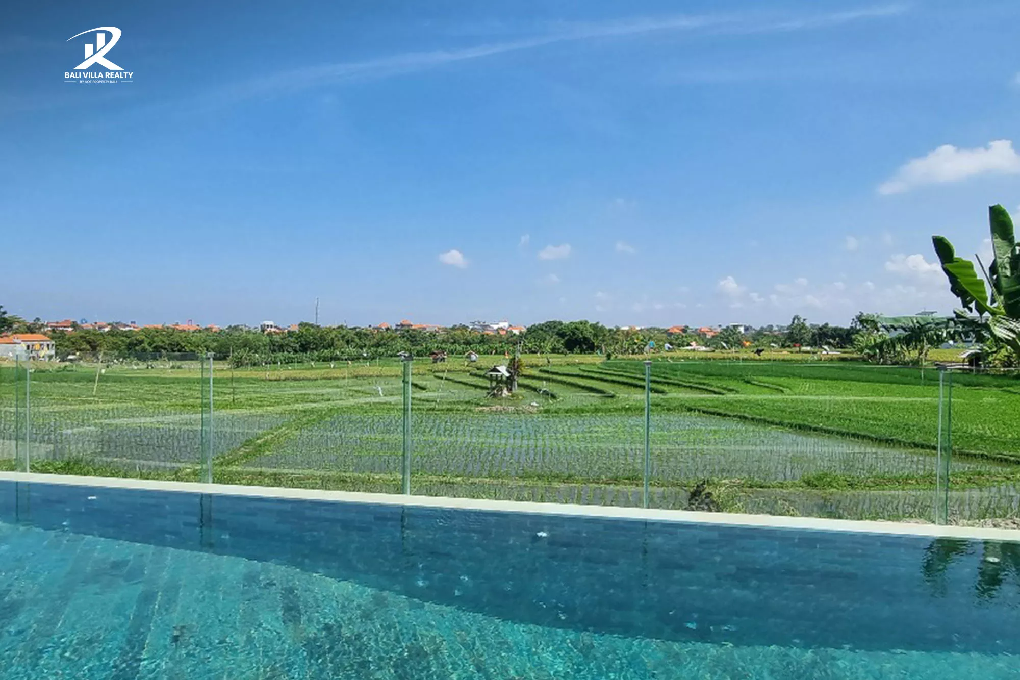 - Private Swimming Pool with crystal-clear water overlooking endless green rice fields