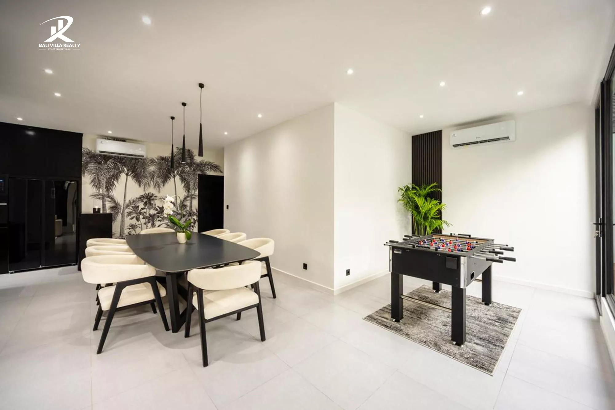 Every corner of this villa is curated for the sophisticated entertainer. From the designer kitchen with its minimalist aesthetic to the dedicated “game zone” featuring a professional foosball table, this home is built for social connection. Retreat to the four oversized master suites, each offering a private sanctuary with direct garden access and spa-inspired bathrooms. Here, the hum of Seminyak fades into the rustle of palm fronds, providing a serene backdrop for a life of unparalleled luxury.