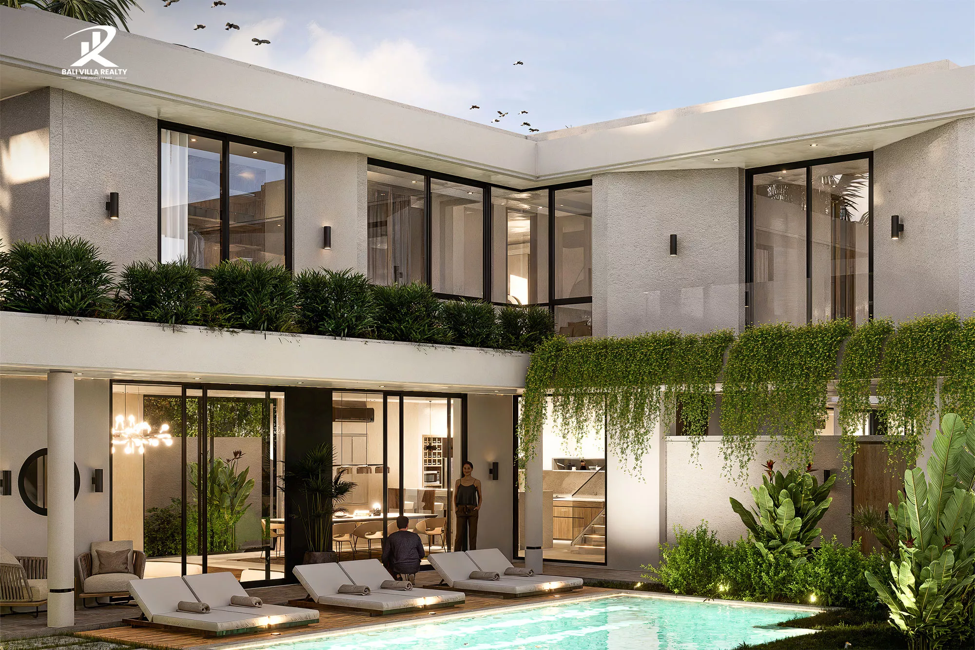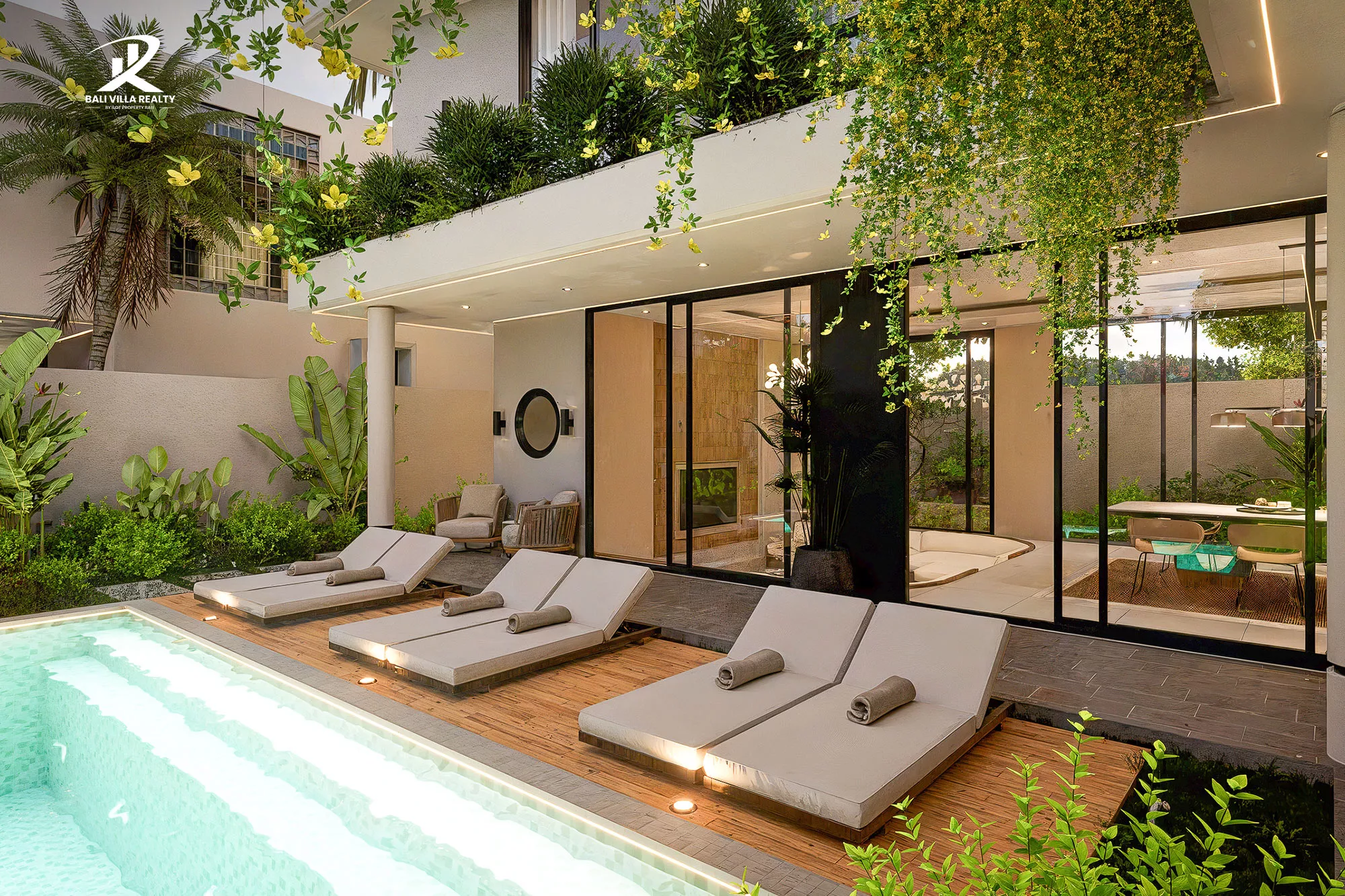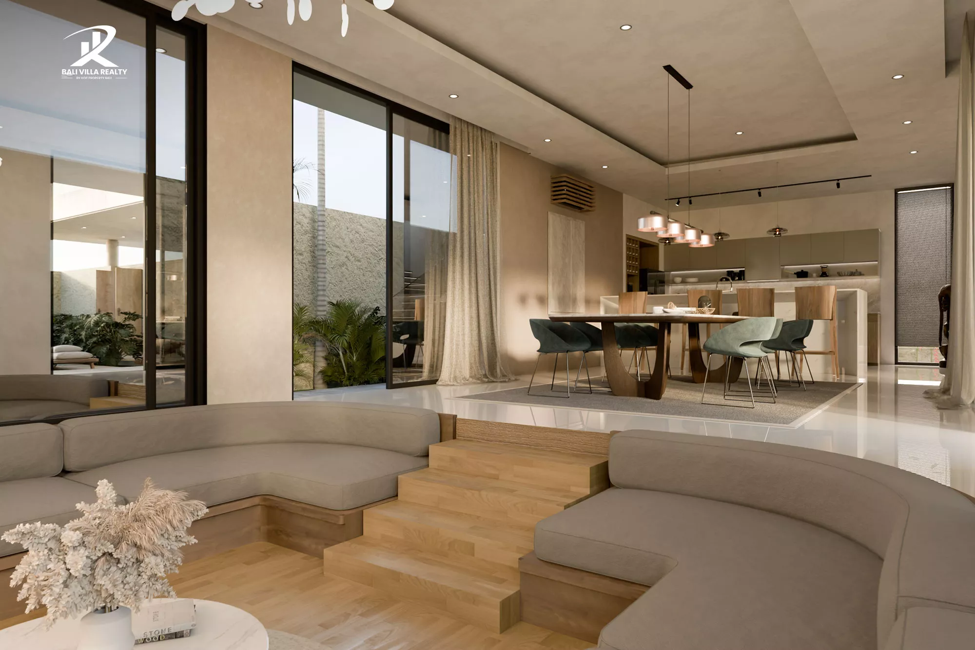 Discover contemporary island living in this stunning 4-bedrooms villa now under construction in Kerobokan, Bali. Designed with a perfect blend of modern architecture and tropical warmth, the villa features a sunken living area, an open-plan kitchen and dining space, and floor-to-ceiling glass that connects effortlessly to the outdoors.