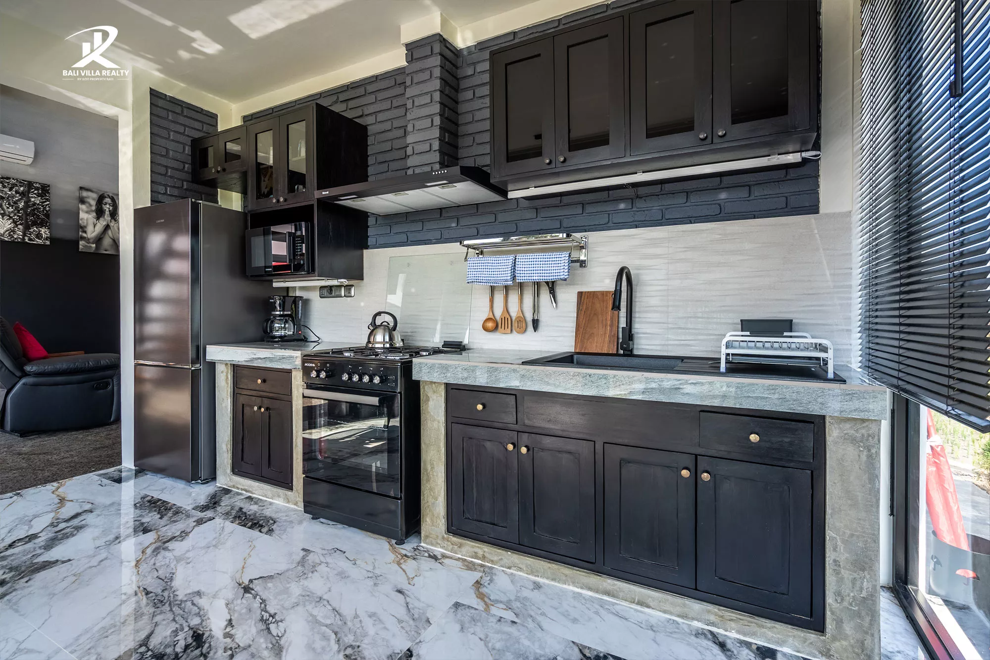 The villa is designed for comfort and convenience, featuring a sleek kitchen, a spacious living area with entertainment, and a private upstairs bedroom sanctuary. Step outside to your private pool and relax, knowing you’ve found your ultimate home base on the Island of Gods.